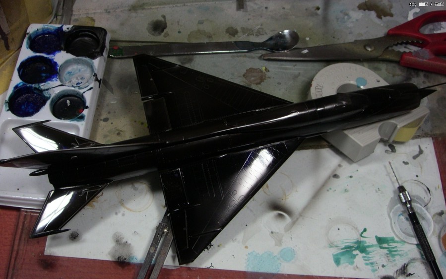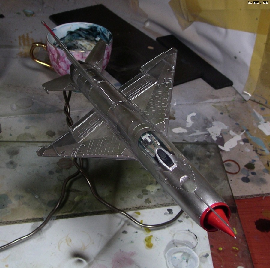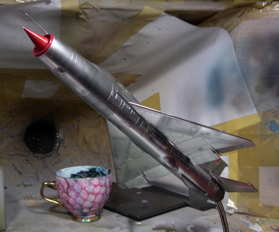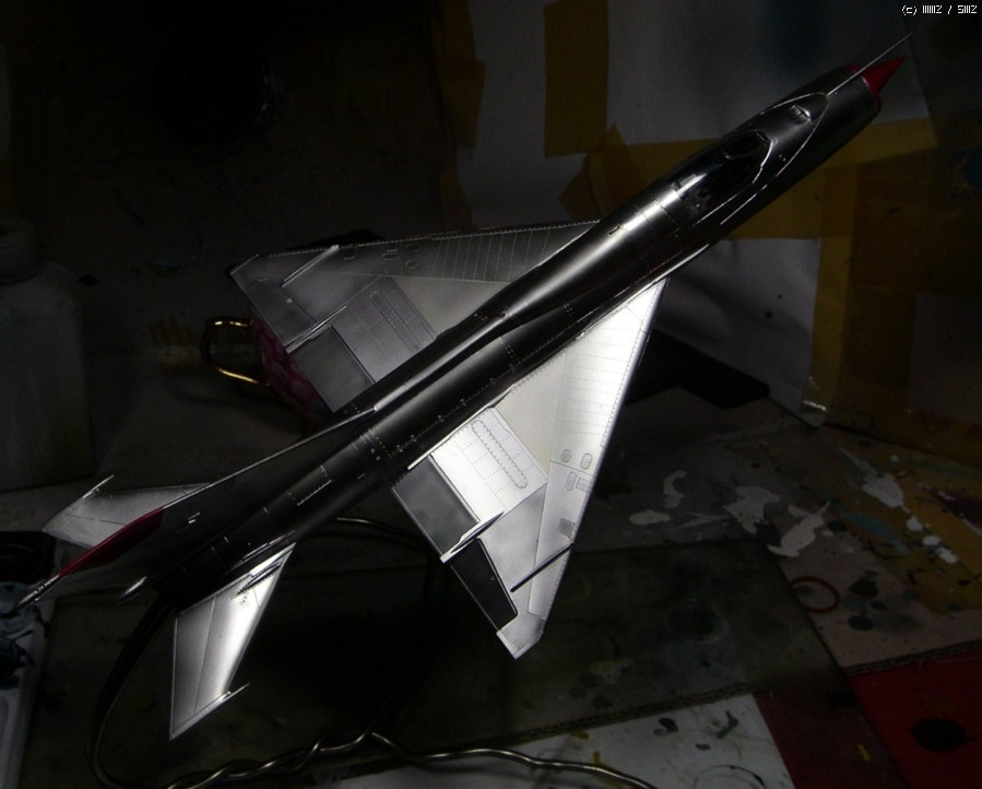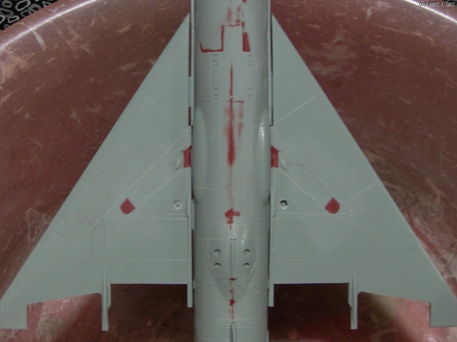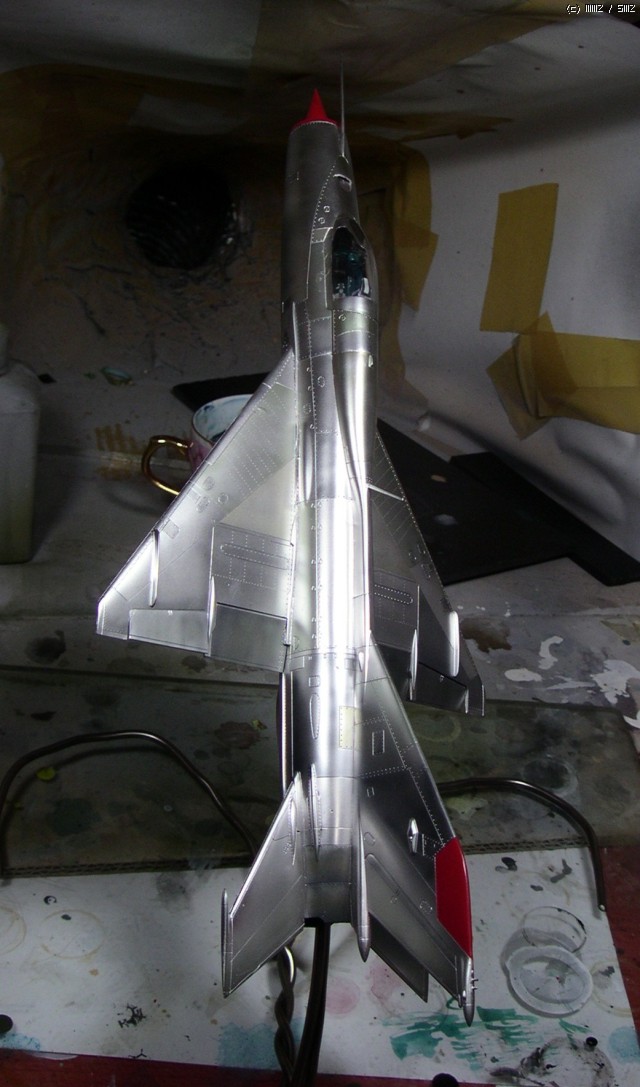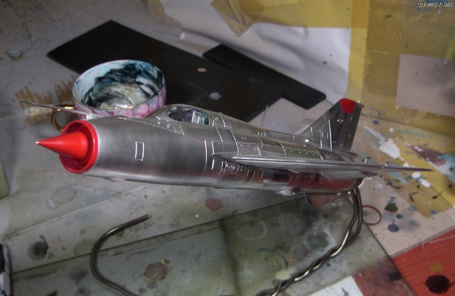 꼬리날개와 기수의 빨간색은 설명서 색지정인 진녹색이 마음에 안들어서 제맘대로 이탈리안 레드를 뿌려줬습니다... 어디선가 빨간 기수의 미그기를 본 것 같아서 판타지 고증은 아닐겁니다..;