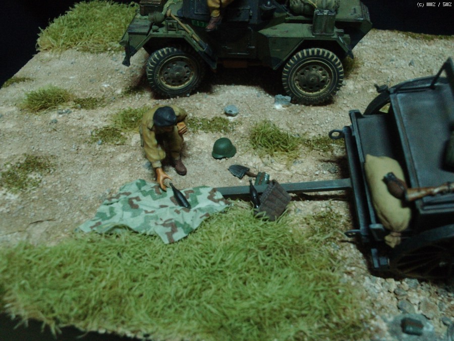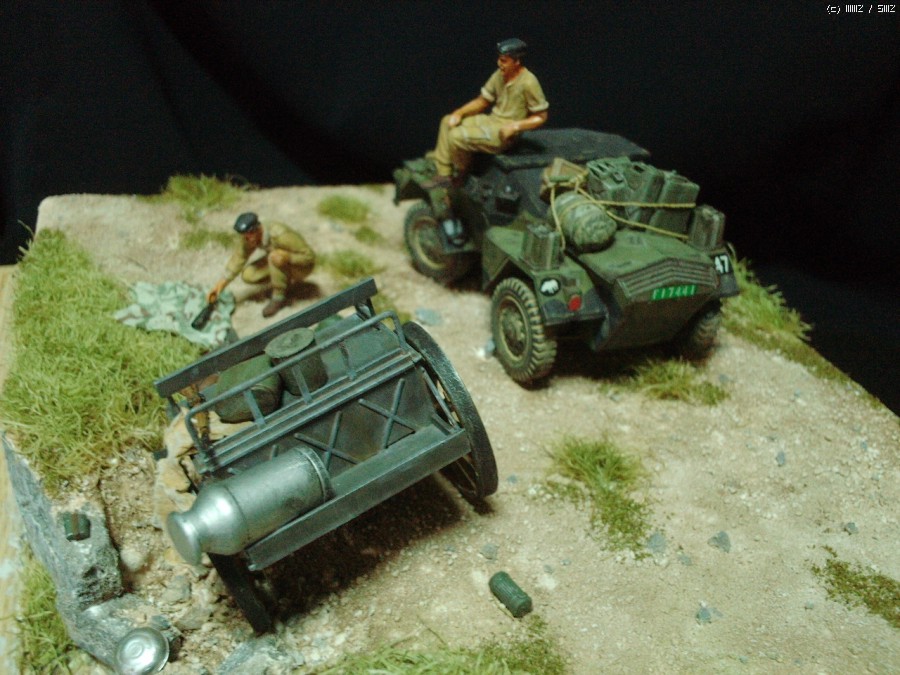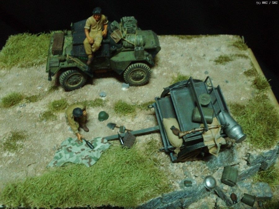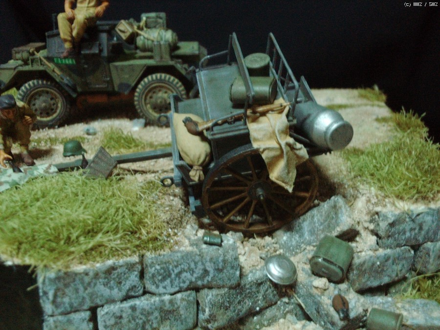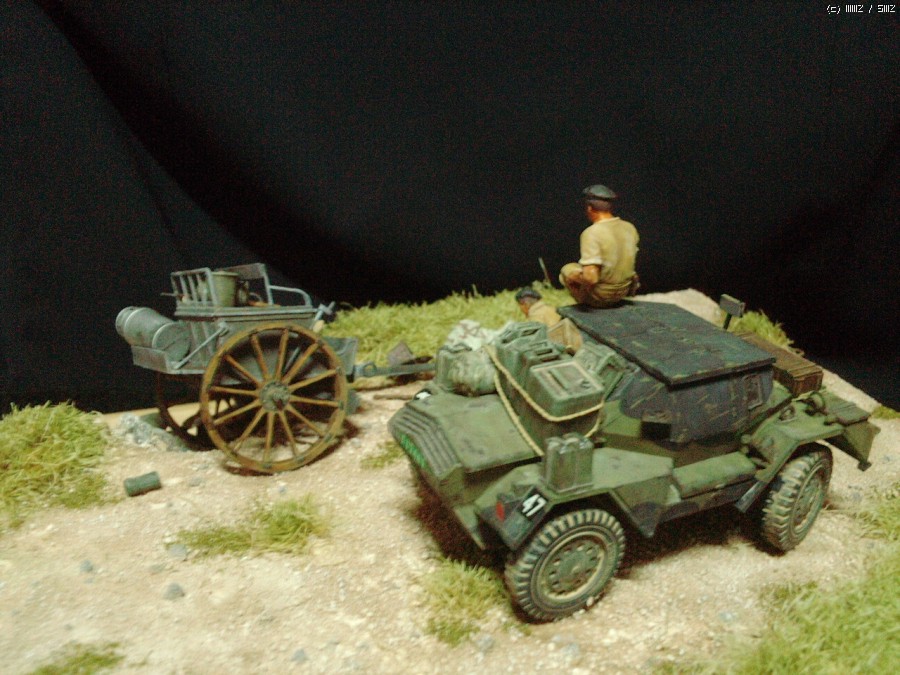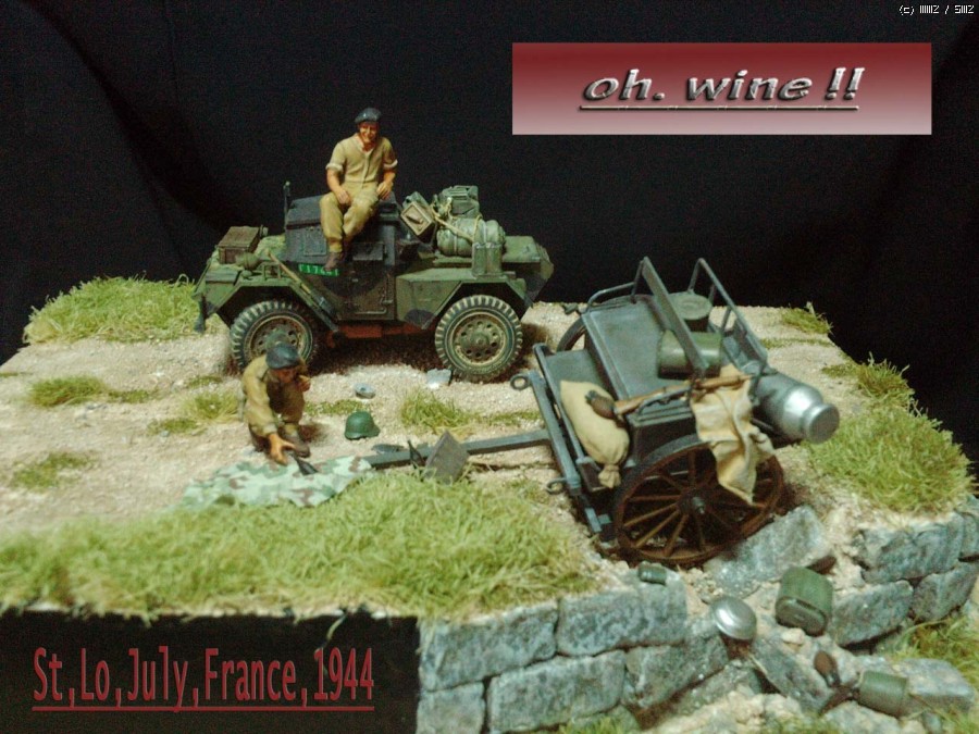 급히 후퇴하는 독일군이 방치한 마차에서 와인을 발견한 영국 장갑차병이