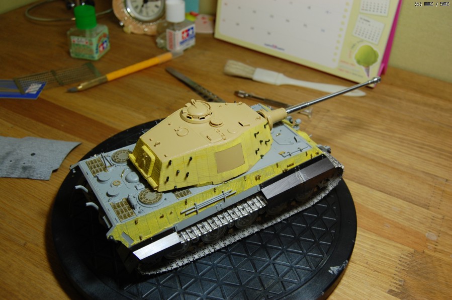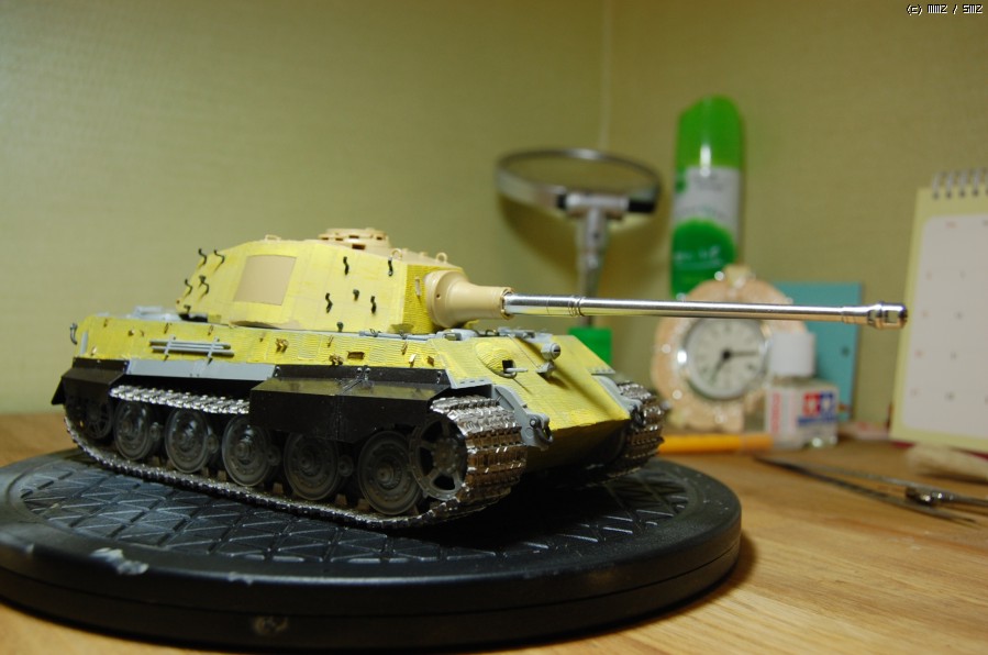 즐거운 추석 보내셨는지요. 정말 오랫만에 제작중인 king tiger입니다. 워낙 king tiger를 좋아하여 결정판인 드래곤제 헨셀버젼으로 만들고 싶어 국내 및 해외싸이트를 뒤졌으나 품절이라는 아픔을....ㅠㅠ 결국 하체는 드래곤제 포르쉐버젼으로, 포탑은 타미야 제품으로 제작하게 되었습니다. 궤도는 furiul, 사이드스커드 에칭은 에듀어드, 클램프는 라이언로어, 포신은 조르디루비오 메탈포신으로 교체해 주었습니다.