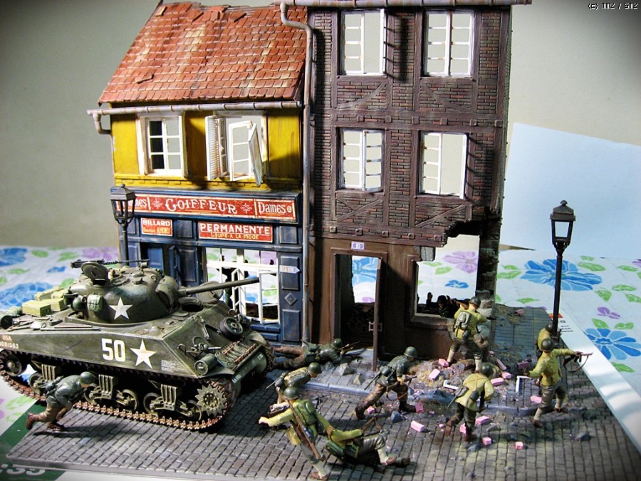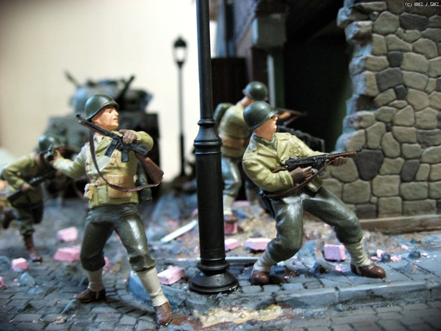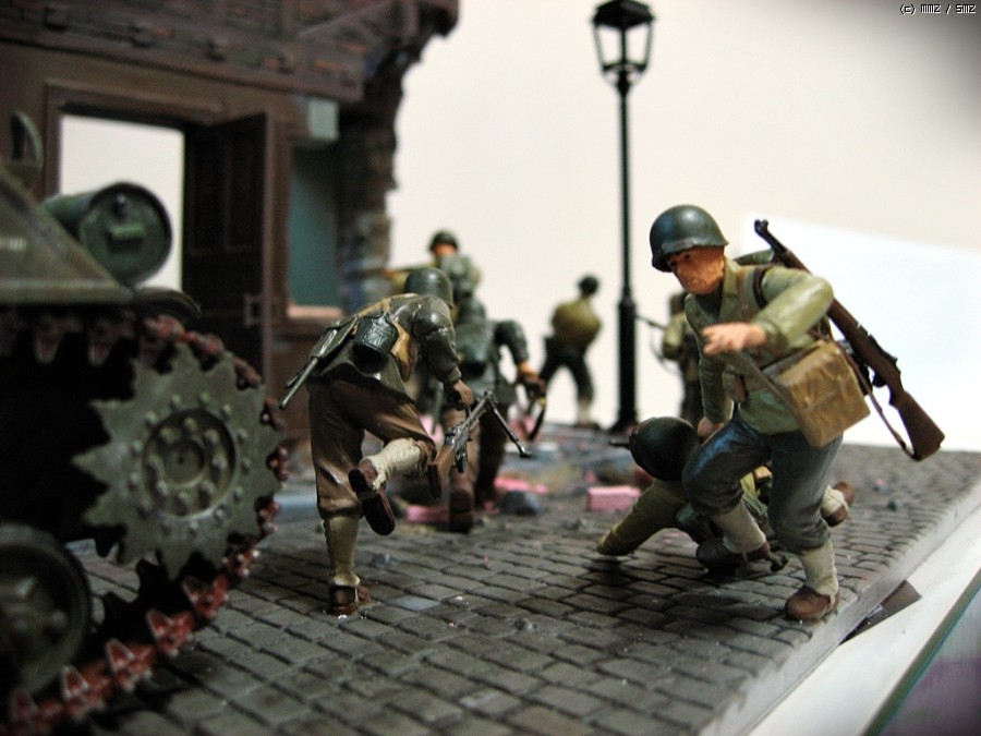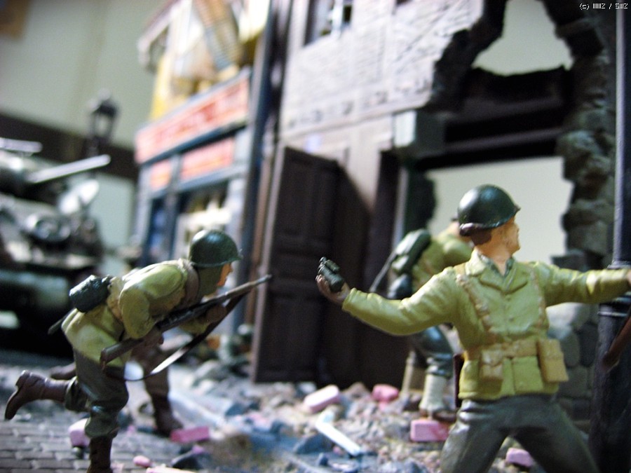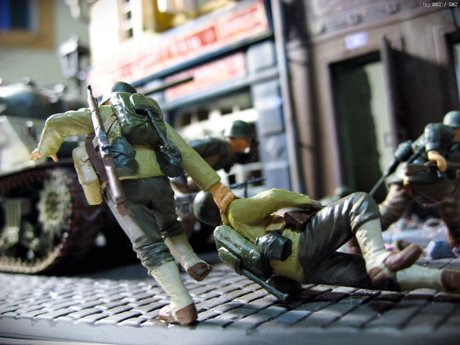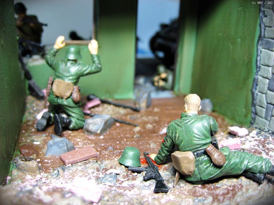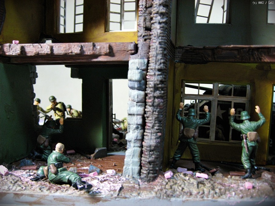 대충 도색된 건물에 인형들과 전차 한대 올려봤습니다..