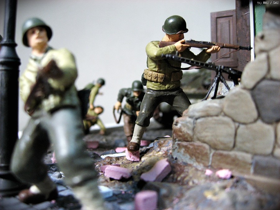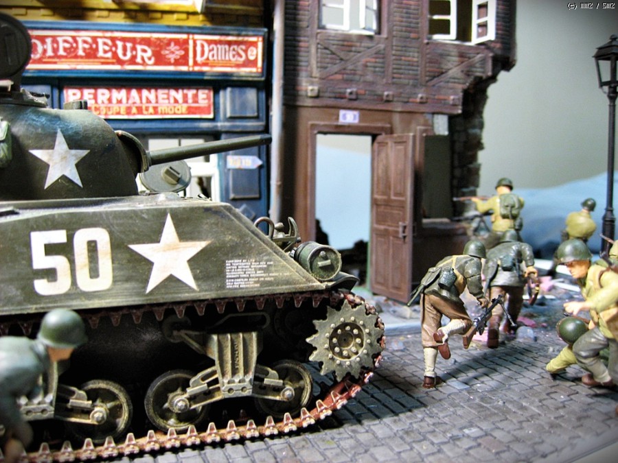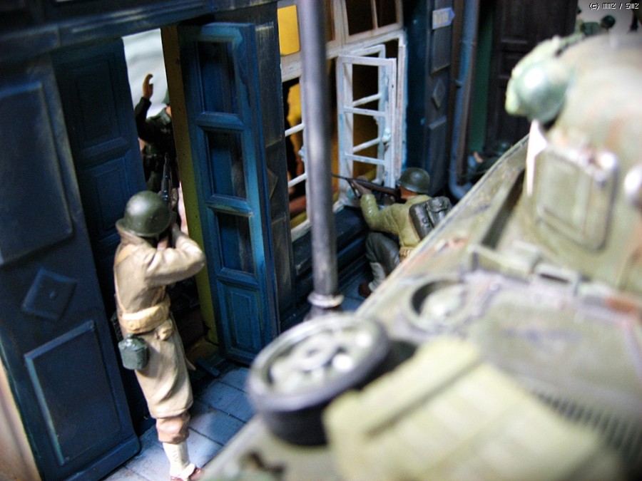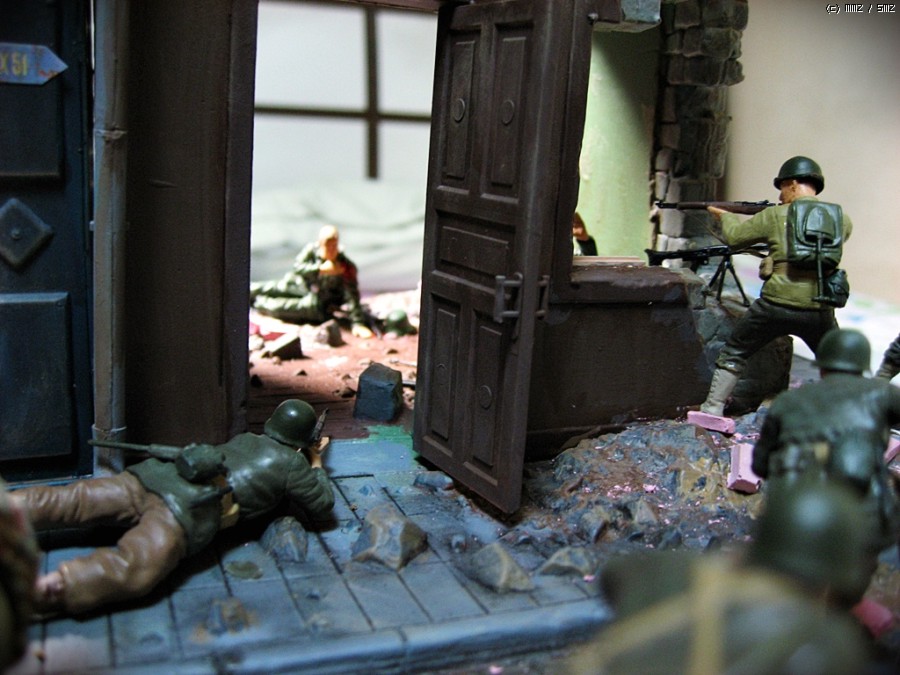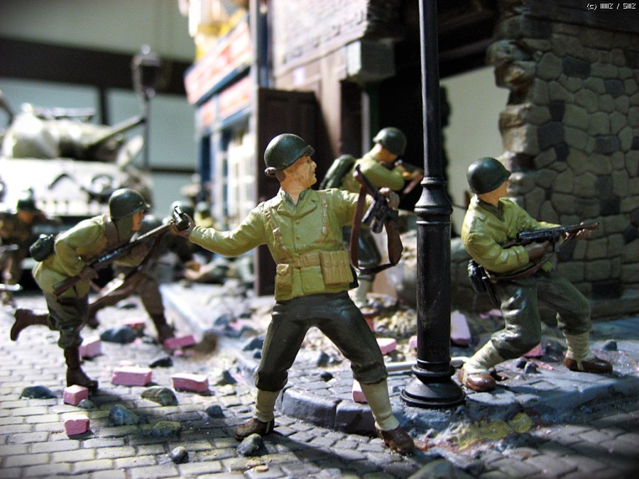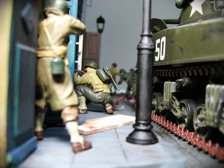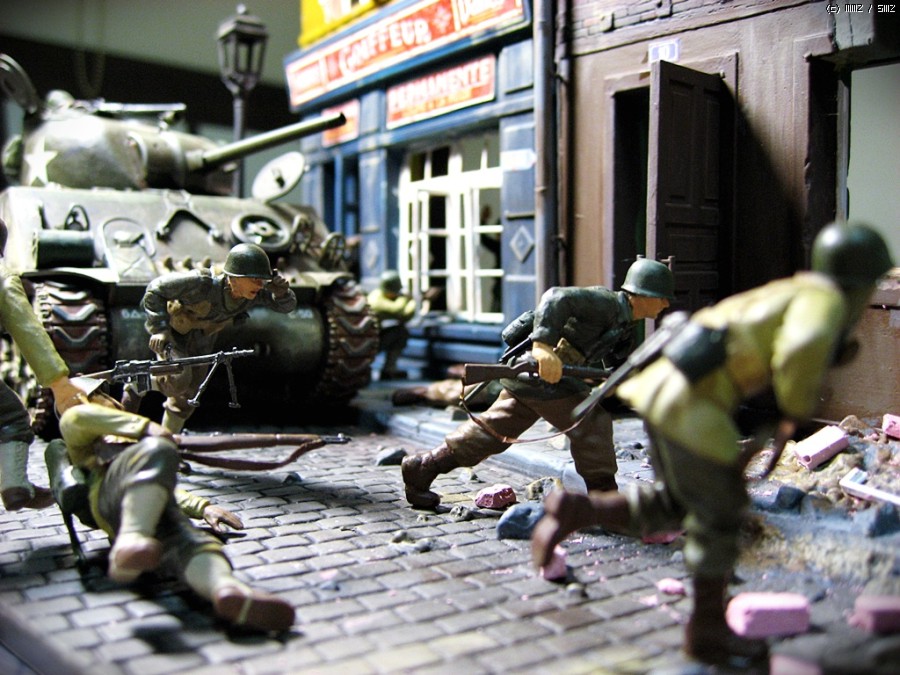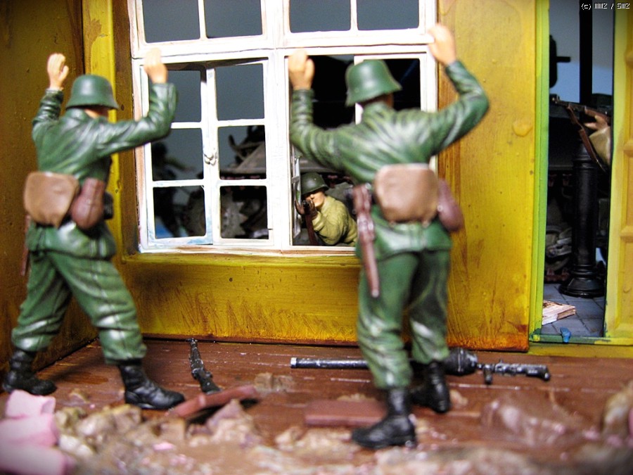 대충 도색된 건물에 인형들과 전차 한대 올려봤습니다..