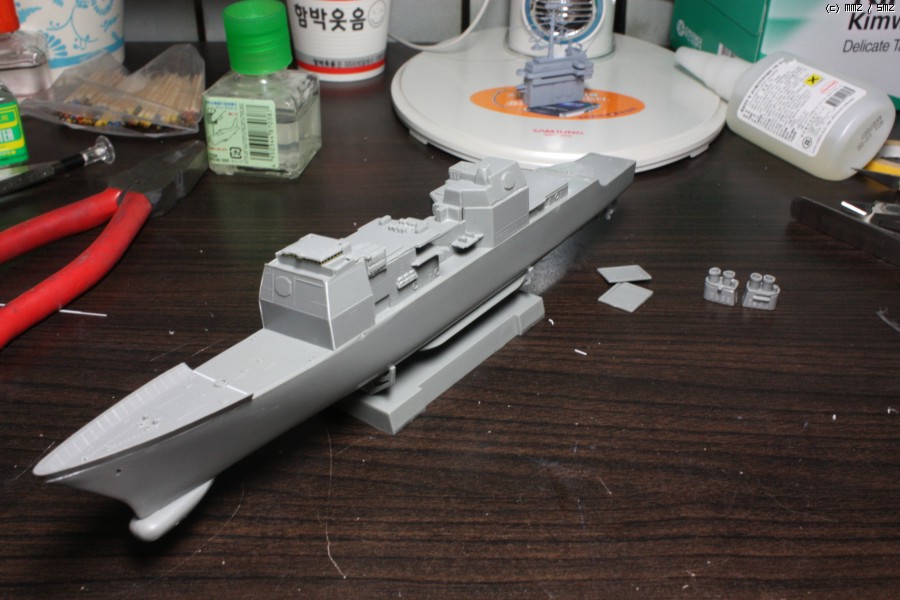 덕분에 스텐드 지지대는 날려 먹고 스텐드 밑부분에 직접 선체를 올렸습니다.