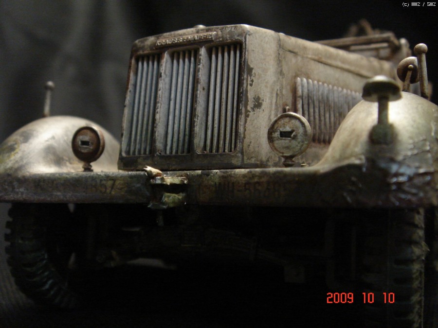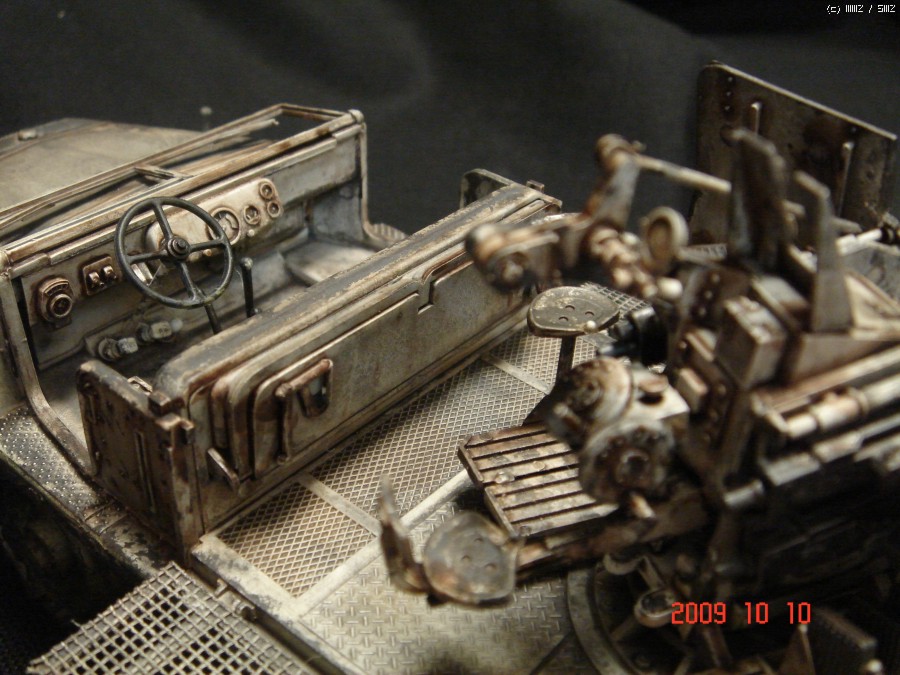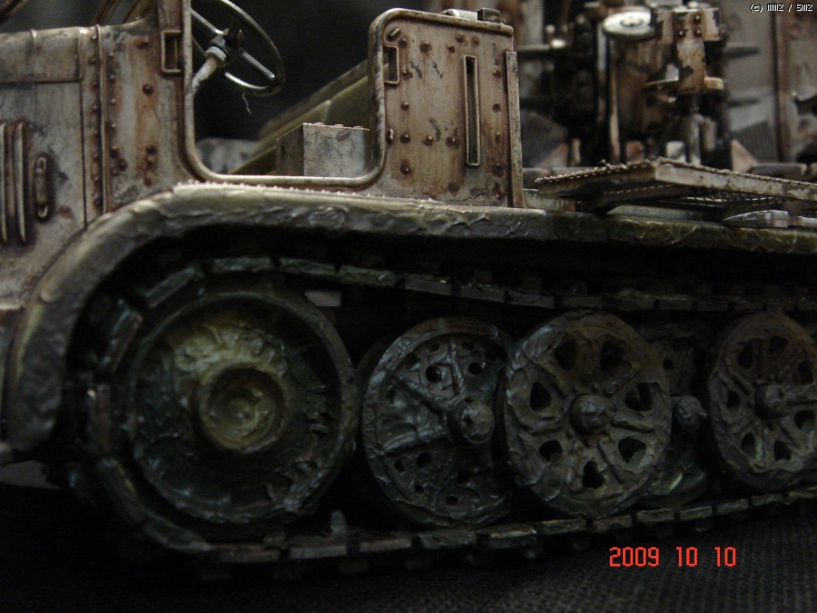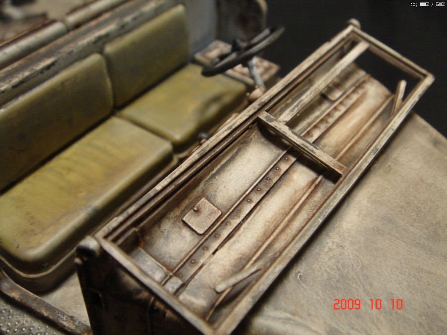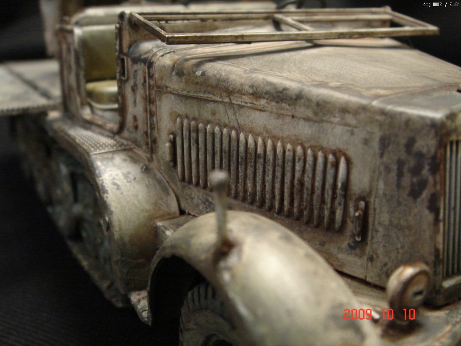 타미야 제품입니다. 밑색 없이 흰색 락카 도색하고 밑색으로 상정된 저먼그레이는 유화로 조색하여 워싱으로 밑색이 비치는 효과를 주고자 했는데 결과는 꽝입니다. 하부의 진흙은 모델링 페이스트 사용후에 락카 조색하여 에어 브러슁 했습니다.