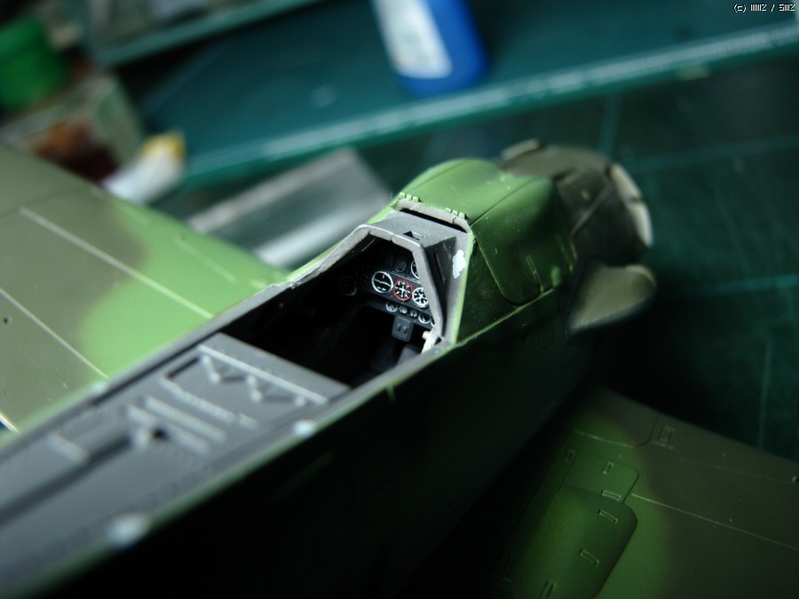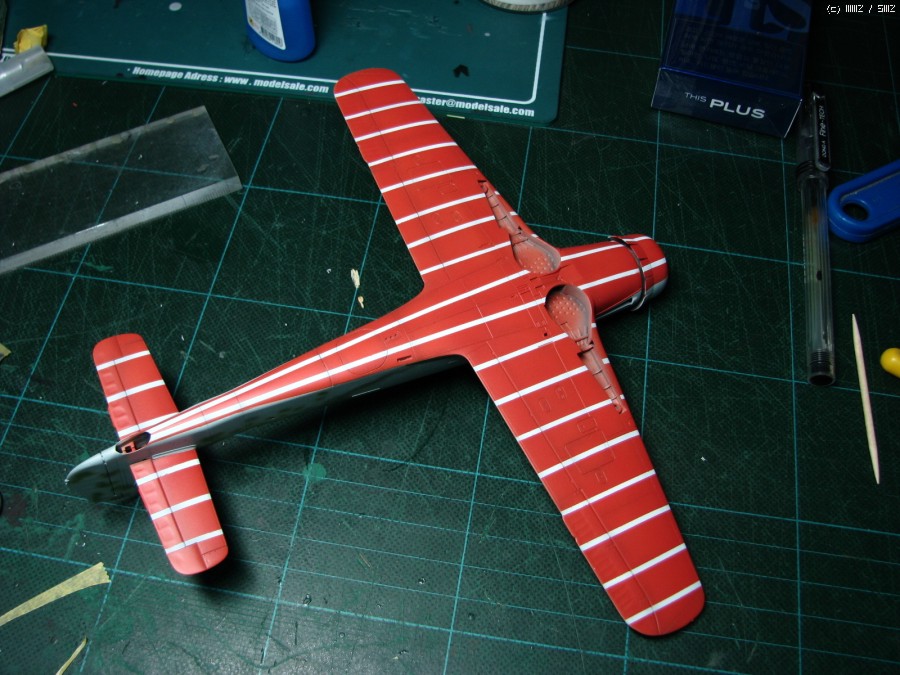 서페이서 1000번을 올린다음 기본도색 하면은 명암도색후 화이트로 도색후 마스킹해준다음 RLM23 레드를 뿌려 주었습니다.