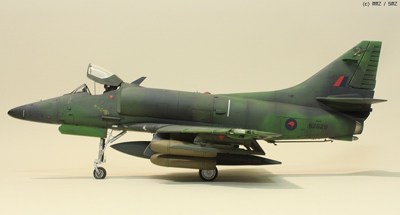 1/48 하세가와 제품 A-4K 스카이호크 뉴질랜드 공군 사양입니다. 화이트 메탈 수직 미익 카나드가 포함되어 있습니다. 뉴질랜드에서는 퇴역해서 자취를 감춘듯 합니다.