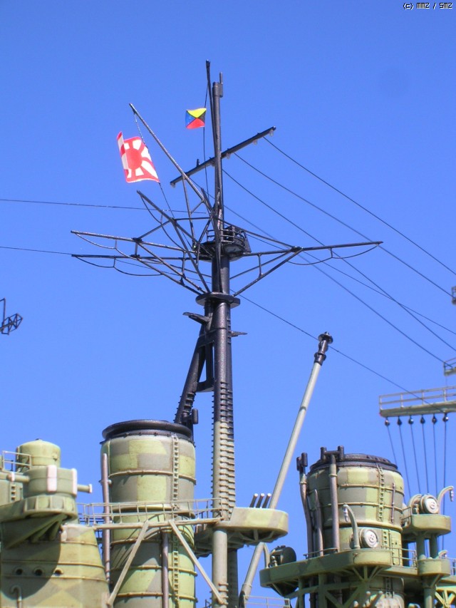 한동안 MMZ에 이슈거리를 제공해준(?) 일본 해군기. 전 사실 그동안 수많은 IJN함선들을 만들었지만 이건 한번도 안달았었는데 뭐 딱히 싫어서라기보단 귀찮아서였습니다.(;;;) 하지만 전 청개구리므로 하지 말라면 더 하고 싶더군요.ㅋ 그래서 처음으로 깃발 달아봤습니다. 개인적으론 모형은 모형으로 생각하는게 좋다고 생각합니다. 모형에 이거 단다고 정신나간 것도 아니요, 또 이걸 본다고 일본 제국주의에 빠심을 느낄 만한 정신나간 사람도 없다고 생각합니다.