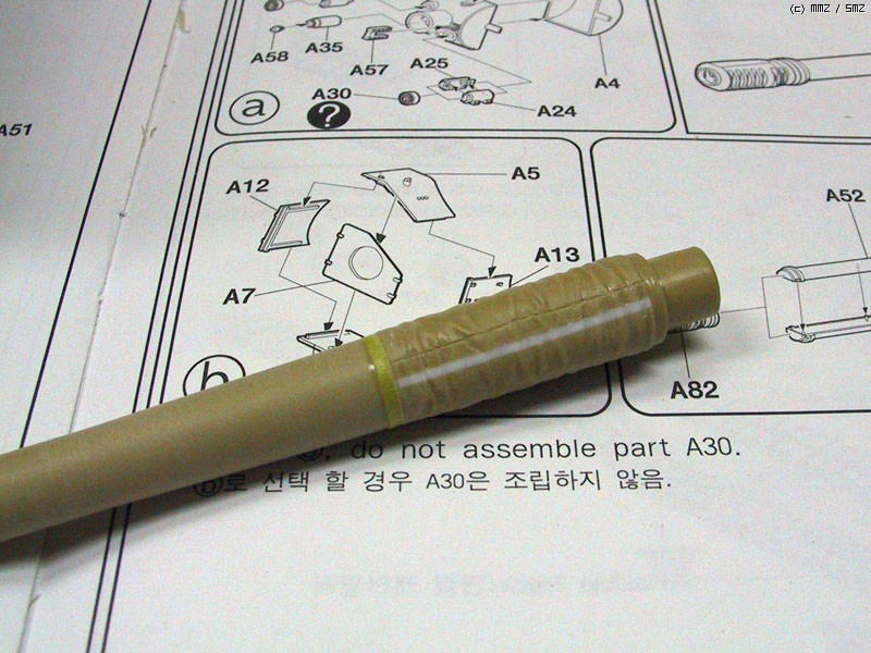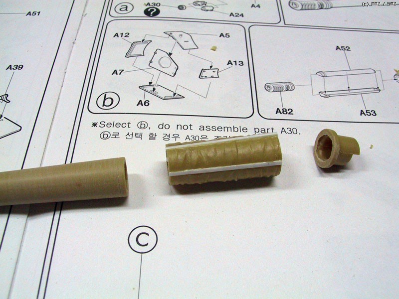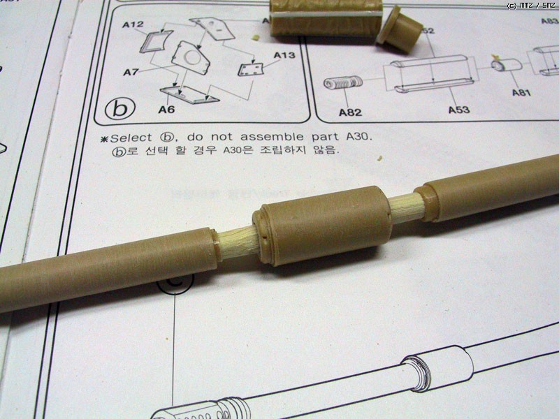 이곳도 그냥 붙이게 되어있지만, 포신이 휘어지는 것을 방지하기 위해 보강재를 넣었습니다.