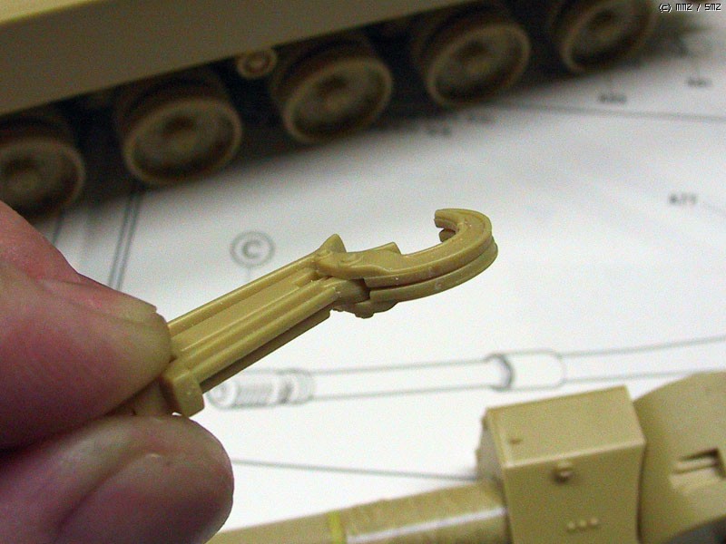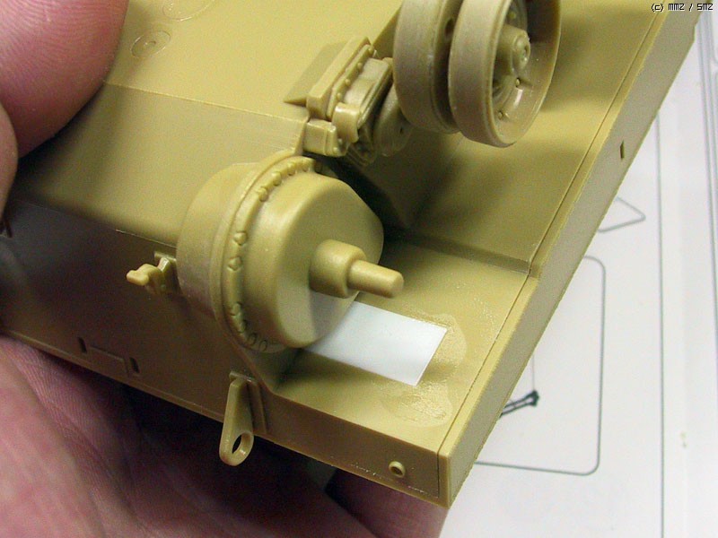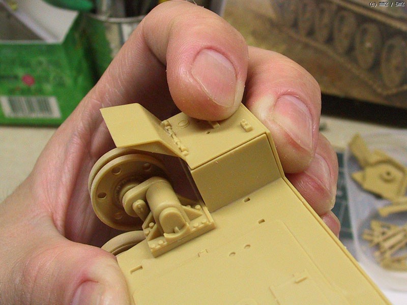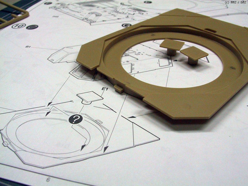 전차병을 세우기 위한 부품의 접착 위치도 알 수 없어 상면 부품을 가조립하여 위치를 표시해야 하는 번거로움이 있었습니다.
