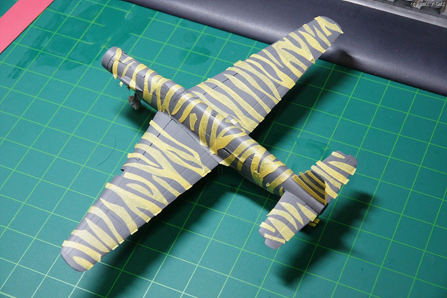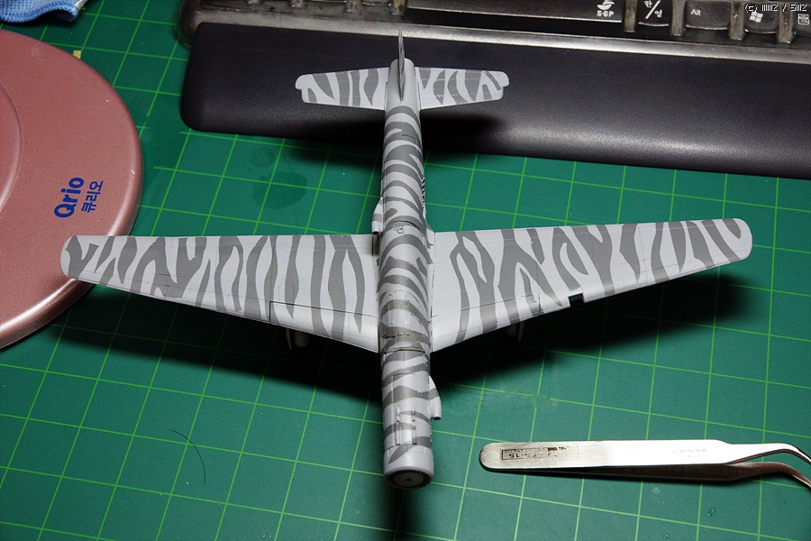 마스킹까지 후 1차 도색 완료한 Do 335B입니다. 도색은 모두 바예호 아크릴을 이용하였습니다.
