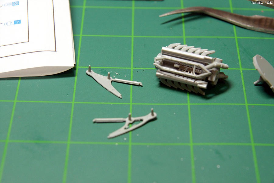 나름 디테일이 좋은 킷인데 어찌된 일인지 이런 디테일을 망가뜨리는 부분이 여기저기 있습니다. 손대기 힘든 밀핀자국이나, 곡면부에 비스듬이 붙어 있는 게이트 등 당황스런 부분이 한 두군데가 아니더군요.