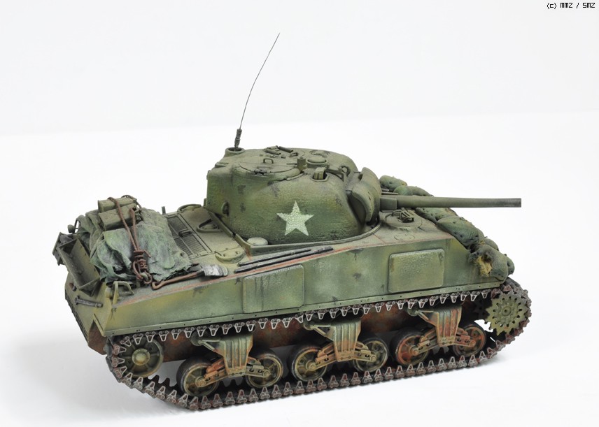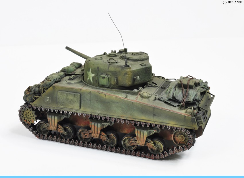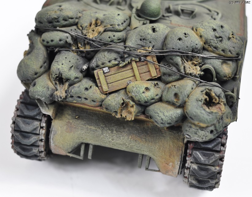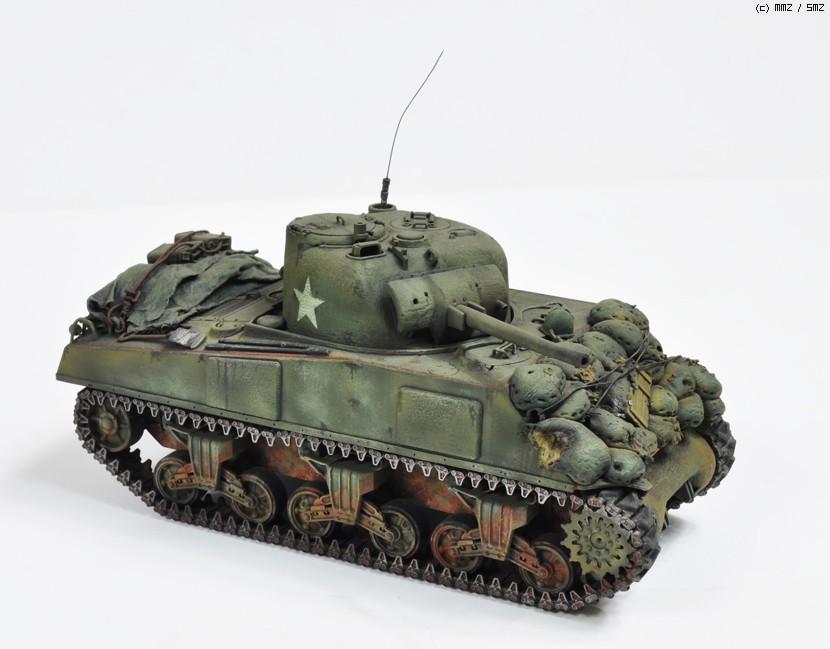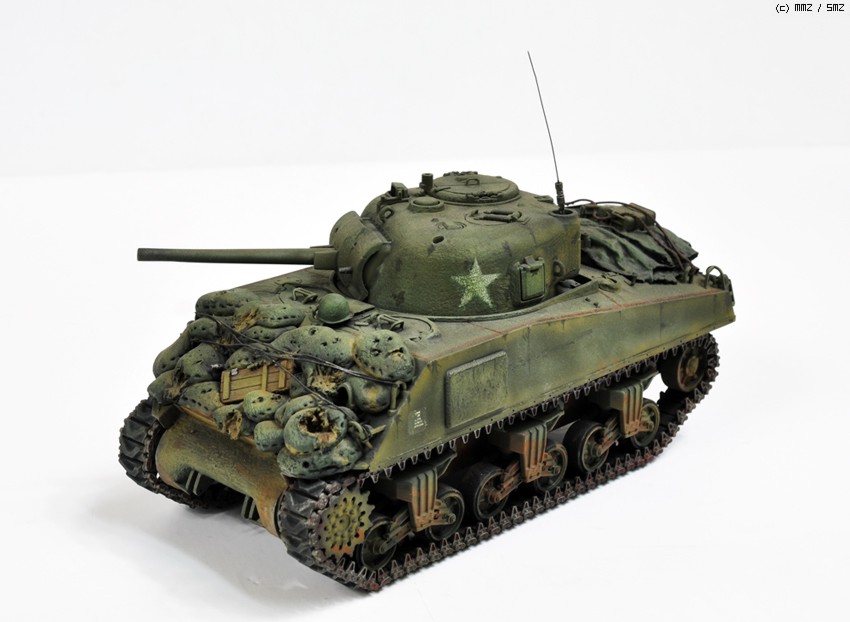 예전에 만든 셔먼입니다 스트레이트 조립에 샌드백을 에폭시퍼티 로 만들었습니다.엔진 데크위에 악세서리는 휴지에 순간을먹여 표현 했습니다. 타미야 에나멜 도색입니다