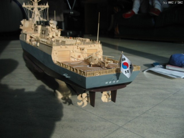 세종대왕함 완성사진입니다. 자료는 인터넷상의 사진 참조 그사진을 바탕으로 G/A도면 작성해서 제작에 참조했구요. 재료는 은행나무,향나무,대나무,재봉실을 사용했습니다.