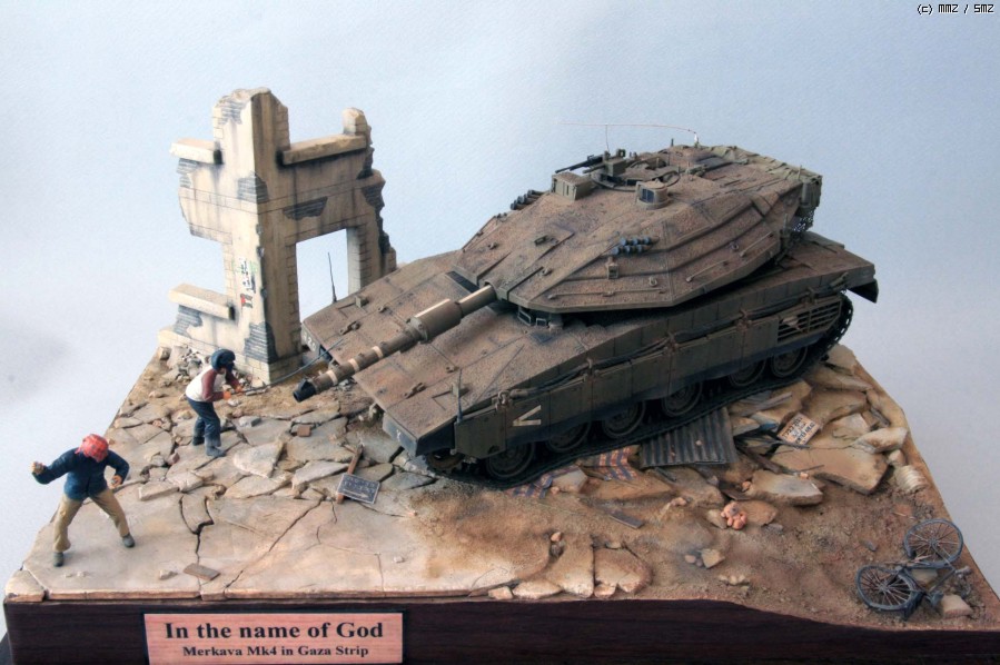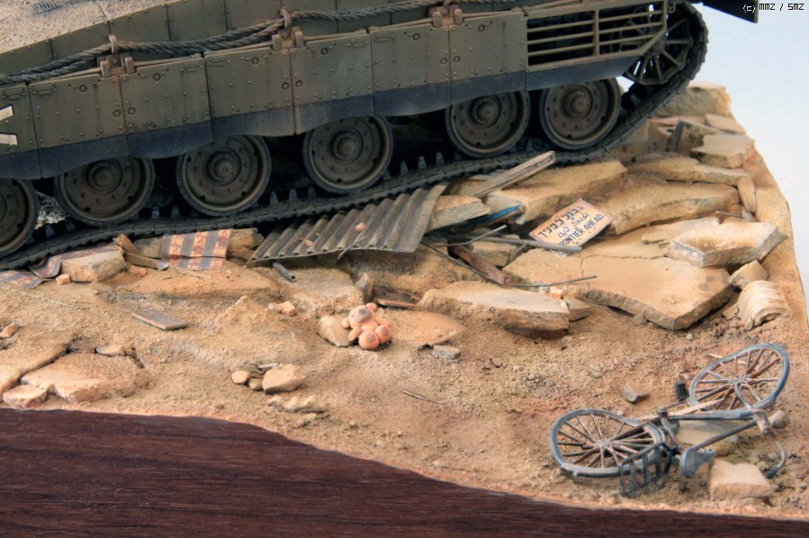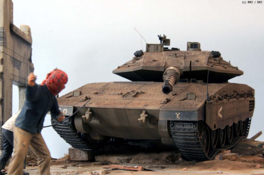 본격적으로 모형에 취미를 두기 시작하기 전, TV를 통해 굉장히 강렬한 이미지로 다가오는 장면이 있었습니다. 이름 모를 거대한 탱크에 돌을 던지는 아이와 새총 쏘는 복면 쓴 젊은이들, 폐허.. 물론 지금까지도 심심찮게 각종 뉴스를 통해 수년전과 다름없이 벌어지는 일입니다. 이후 모형이 중요한 생활의 일부분이 된 데에는 '언젠가 이 장면을 꼭 만들어 보리라'라고 생각한 것이 큰 이유중의 하나가 되었습니다. 오늘에서야 드디어 큰 숙제 하나를 덜었네요.