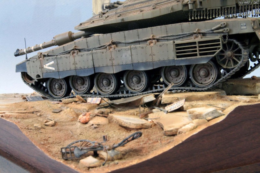 아카데미 메르카바, 이탈레리 건물, 자작 인형, 그 외 몇 가지 잡동사니를 사용했습니다. 메르카바 작업량은 다신 생각하고 싶지 않을 정도네요. 논슬립코팅 및 체인 커튼에서 정말 기절하는 줄 알았습니다. 지금까지 드래곤 파이어플라이 트랙을 최고라고 생각했었는데.. 그 2~3배 정도가 되었던 것 같습니다.