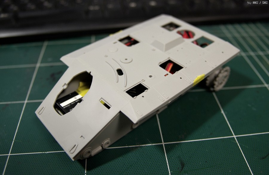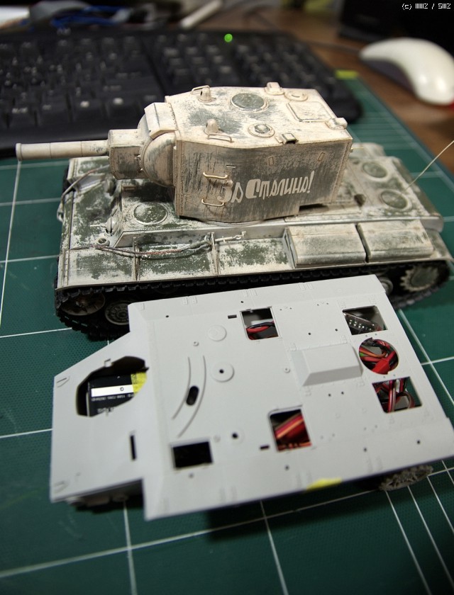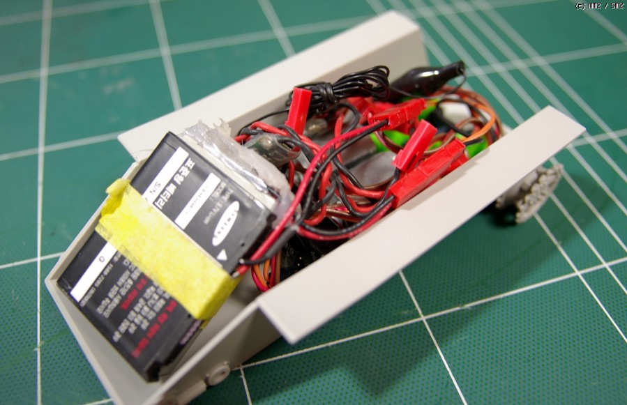 RC 탱크로 만들기 위해 배터리와 각종 회로를 어거지로 우겨 넣습니다. 닫히기나 할까요?