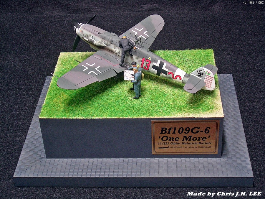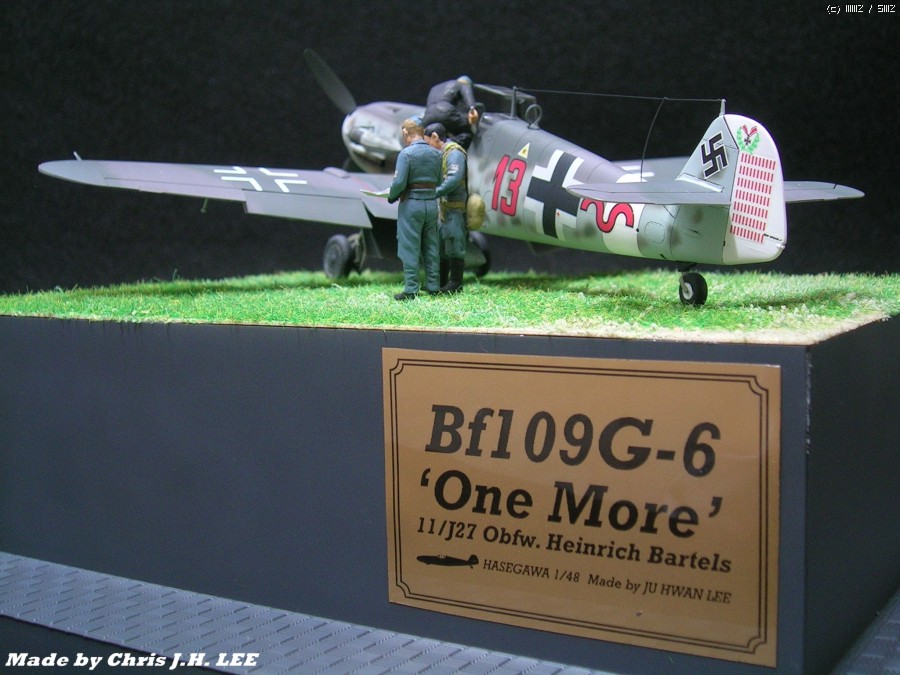 킷트는 1/48 하세가와 Bf109G-6를 스트레이트로 만들었으며, 오래된킷트라 데칼이 갈라지는바람에 주익의 국적마크는 스텐실처리하였으며, 데칼작업하는동안 불안하게 작업을 했습니다.