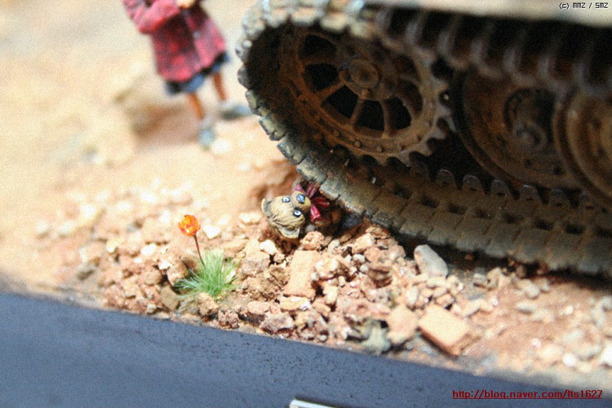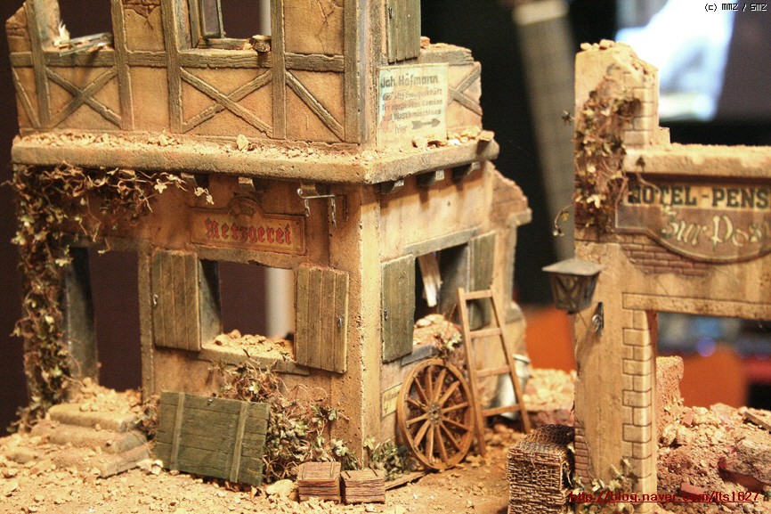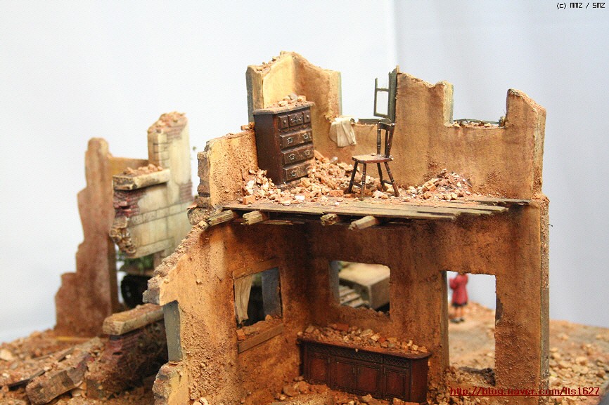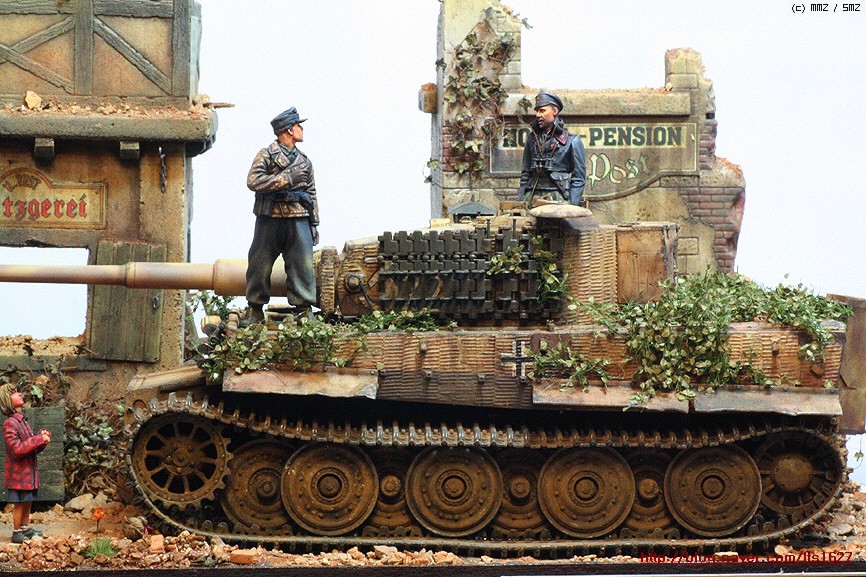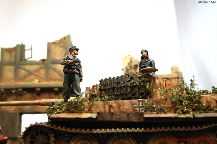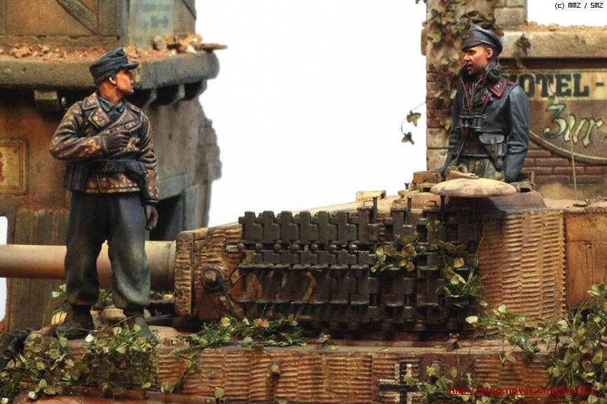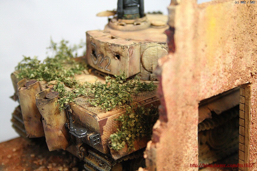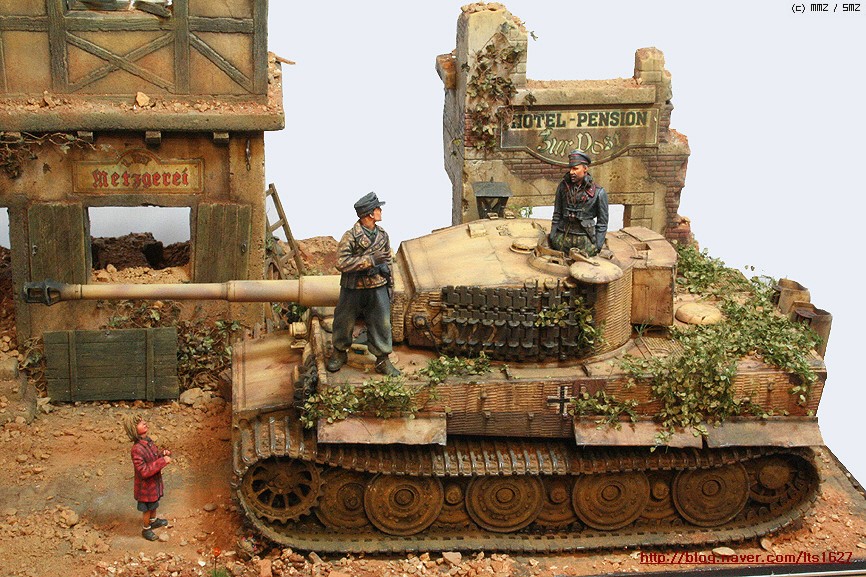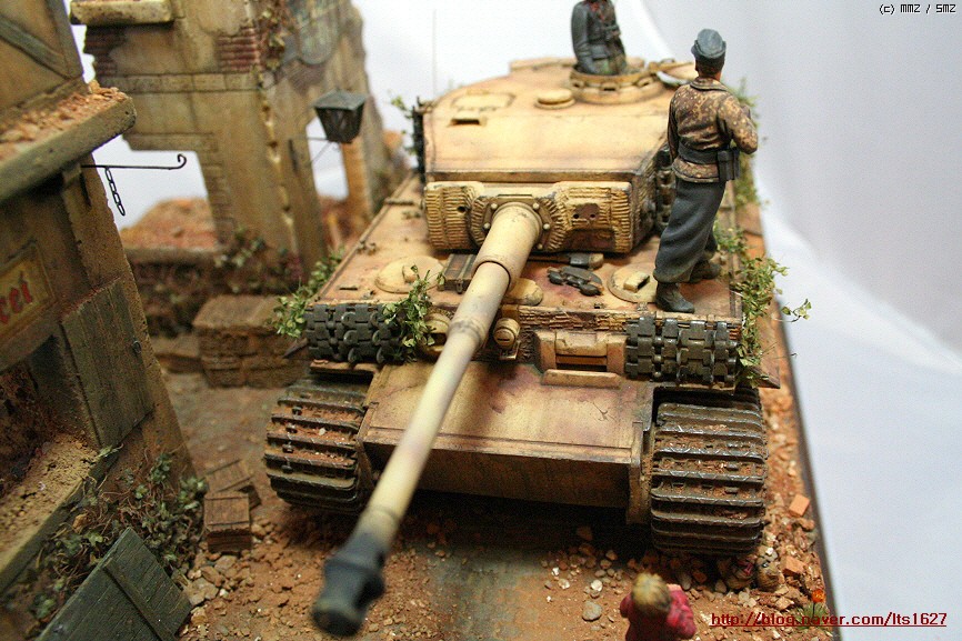 전체적으로,,아카데미 제품으로 티이거 후기형,소프트비닐 건물(왼쪽) . 오른쪽 건물은 이탈레리 제품입니다.