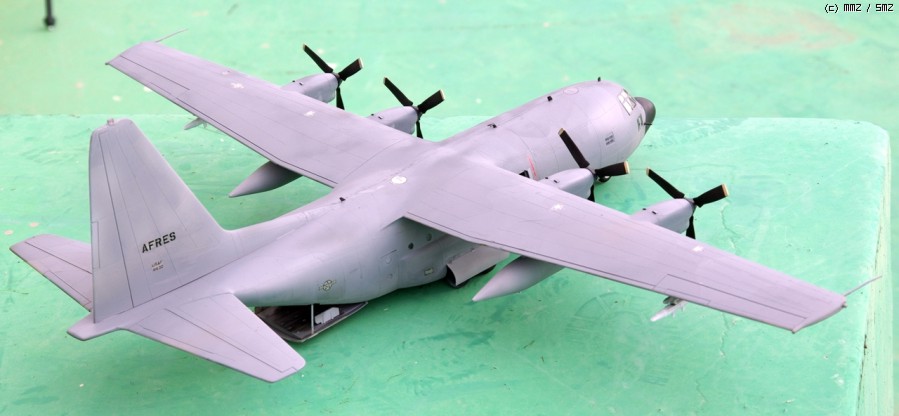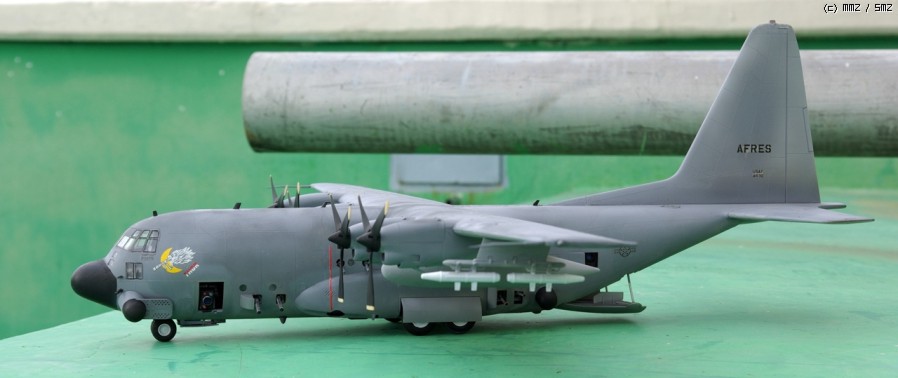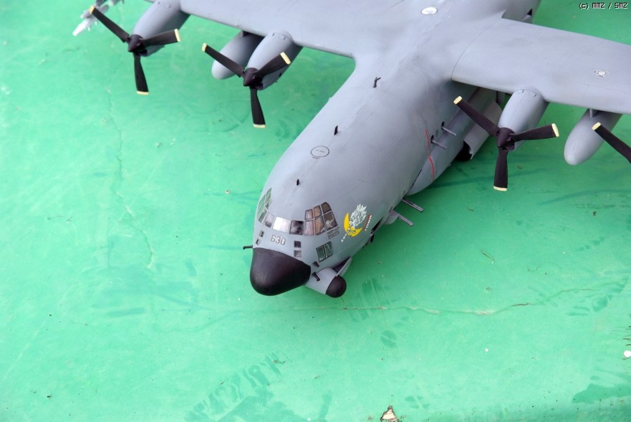 좀처럼 보기 힘든 대물(大物)인 이탈레리 AC-130A입니다. 너무나 커서 제작하기도 힘들었고 보관하기도 너무 힘드네요. 위장무늬도색 시 실수한 부분이 너무 많아서 쓰레기통으로 던저버릴까 했는데 그러자니 너무 아까워서 단색 도색으로 바꾸고 대강 마무리했습니다.