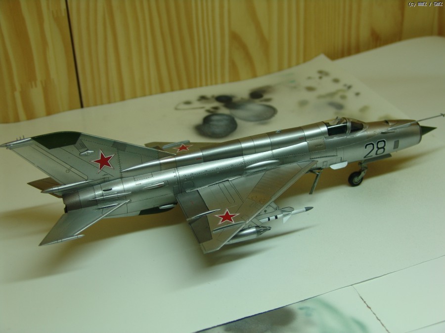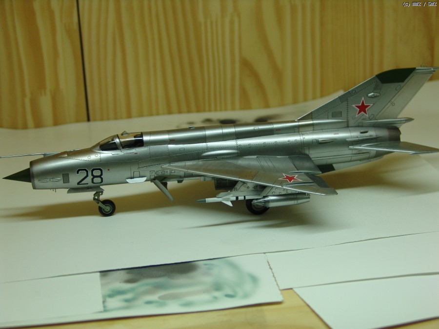 아카데미 미그21MF입니다. 처음시작은 저번과는 다른 느낌을 주고싶어서 시작했지만 완성후 보니 저번에 만든것과 별 반 다를것이 없네요. 도색은 기본색으로 스테인레스에 슈퍼실버를 섞은것으로 했고 티타늄실버와 스틸을 기본색에 섞어서 조금씩 패널변색을 시도했습니다.