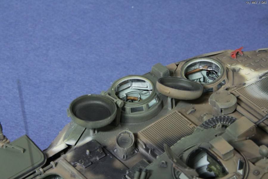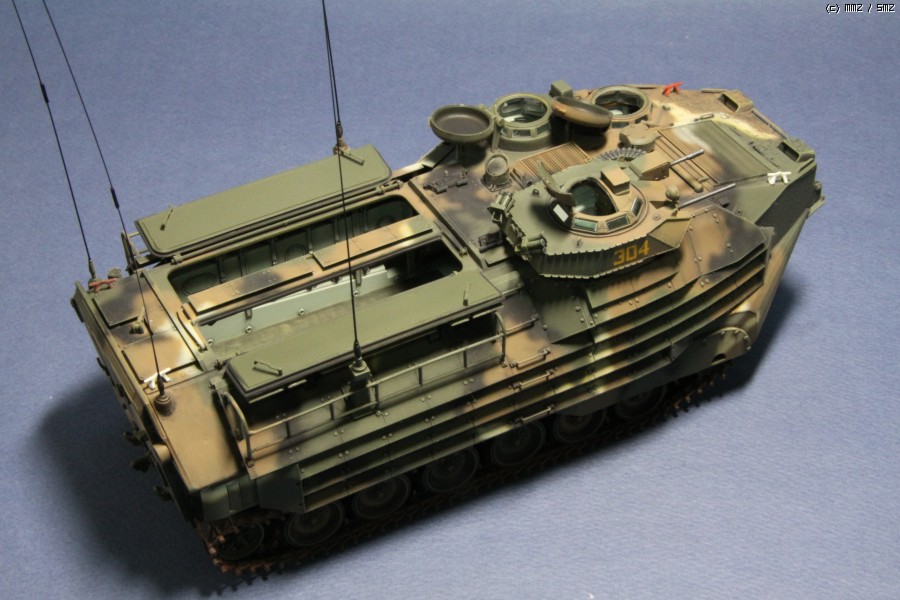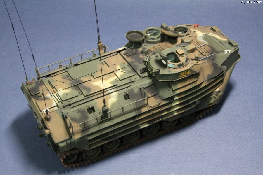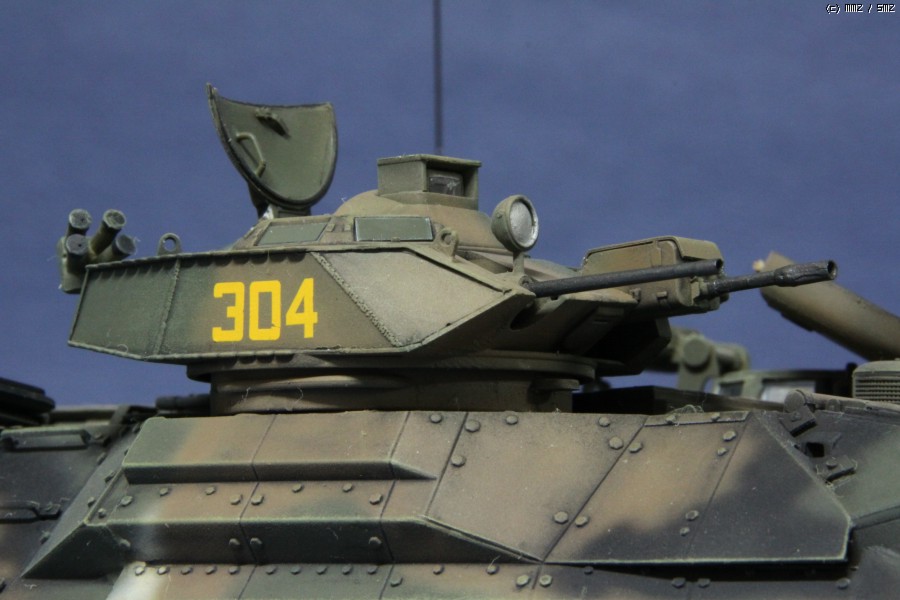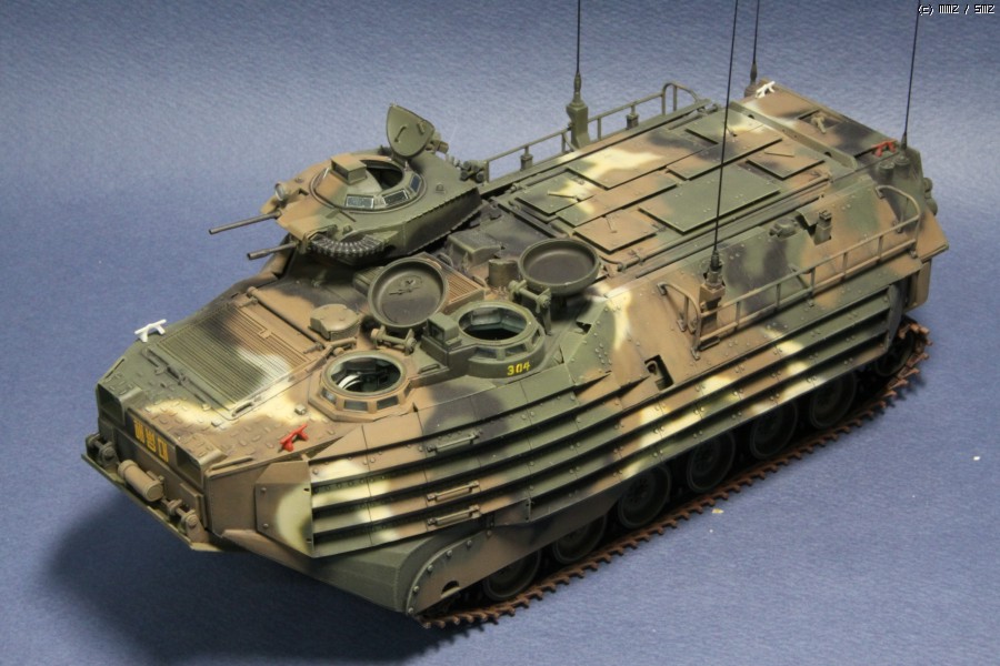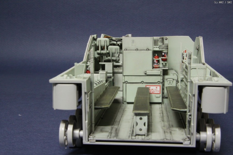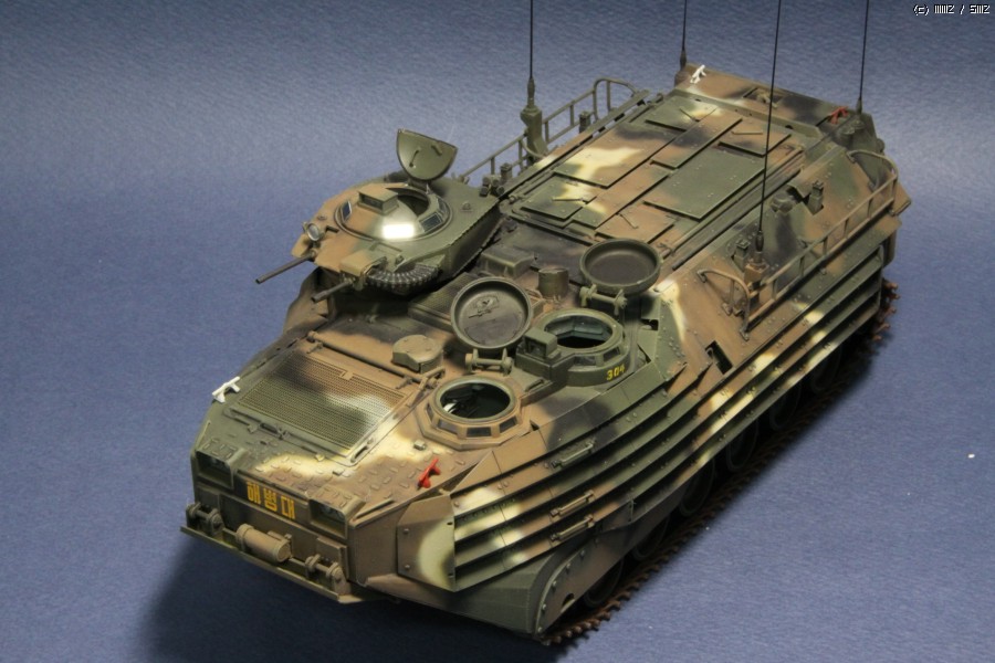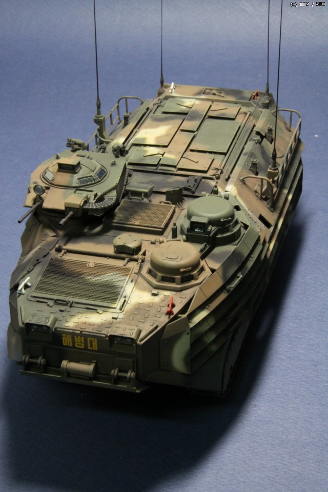 전작 미해병대버전과 주요 차이점이자 디테일업 포인트는 예비캐터필러의 위치이동(차량측면후부→상부전면), 수기용 깃발꽂이 부착(큐폴라후면), 해치 내외부 손잡이, 외부 화재진압레버, 우측 1번 어플리케(증가장갑)결속 브라켓/볼트 재현 등 이며 투명 관측창은 30% 미러 선팅지를 이용 틴팅해 주었고 캐터필러는 킷의것을 사용하였습니다. 개인적으로 명예를 걸고 제작한 두꺼비 입니다...^^