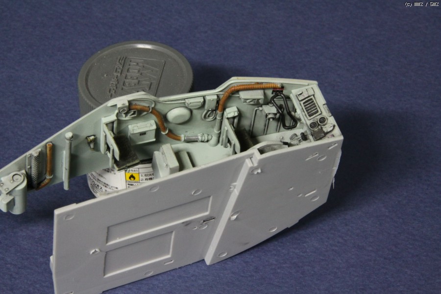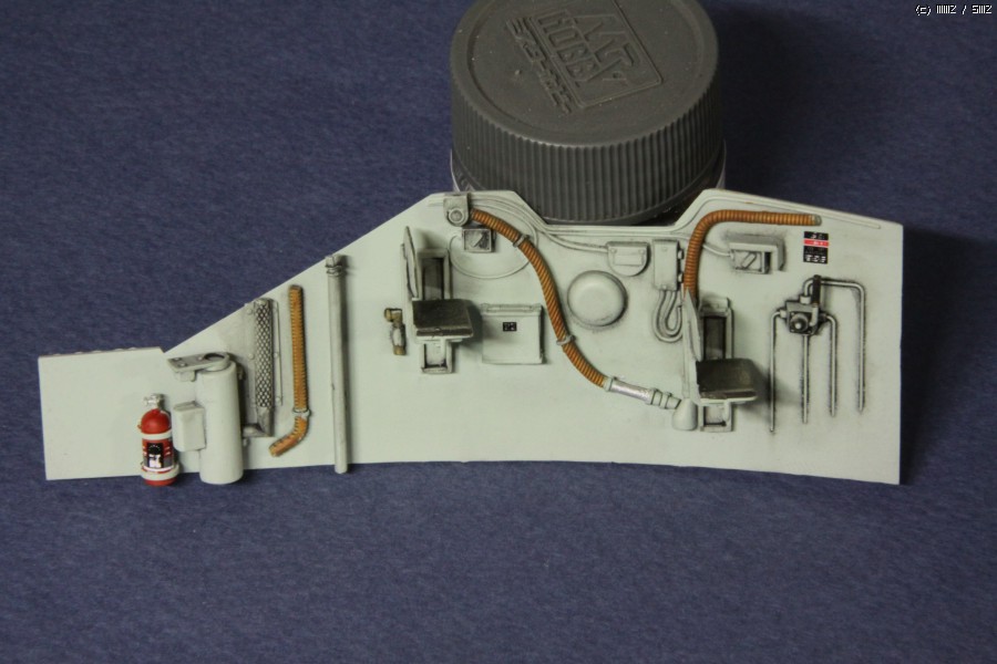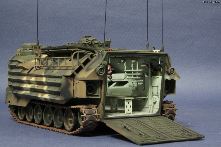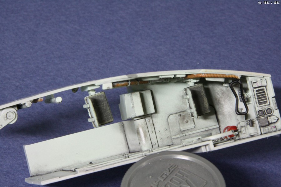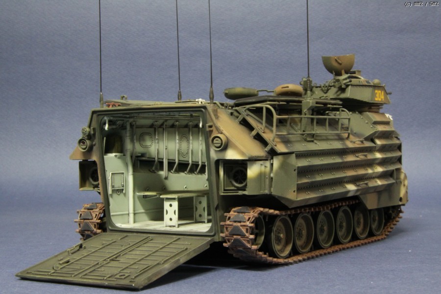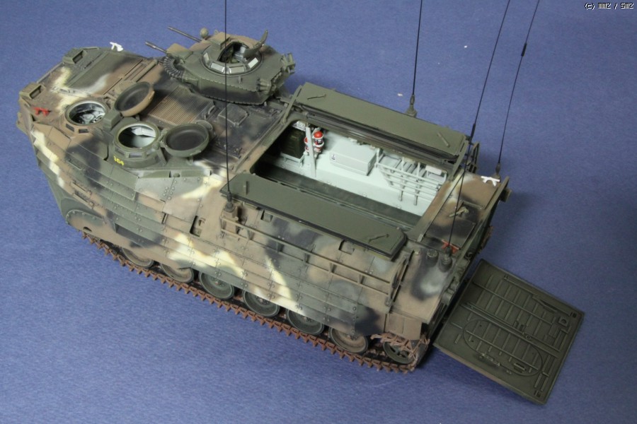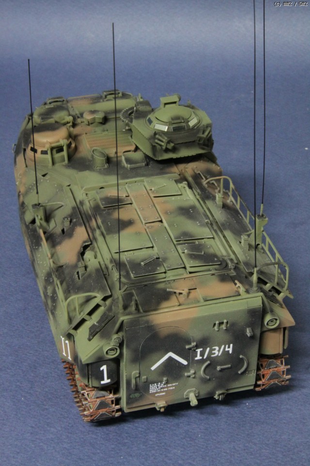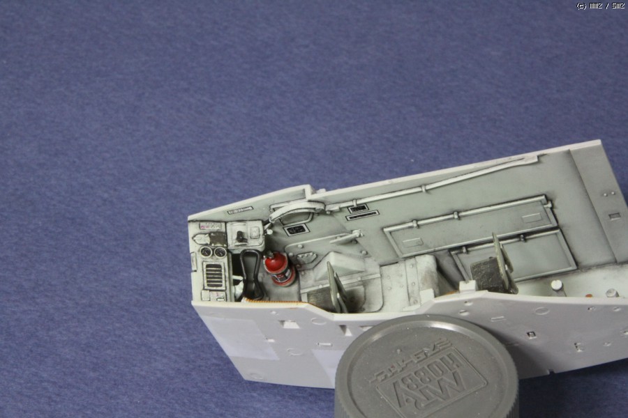전작 미해병대버전과 주요 차이점이자 디테일업 포인트는 예비캐터필러의 위치이동(차량측면후부→상부전면), 수기용 깃발꽂이 부착(큐폴라후면), 해치 내외부 손잡이, 외부 화재진압레버, 우측 1번 어플리케(증가장갑)결속 브라켓/볼트 재현 등 이며 투명 관측창은 30% 미러 선팅지를 이용 틴팅해 주었고 캐터필러는 킷의것을 사용하였습니다. 개인적으로 명예를 걸고 제작한 두꺼비 입니다...^^