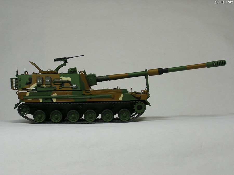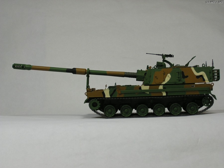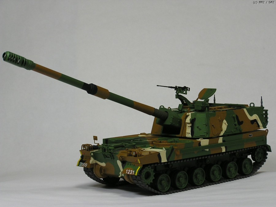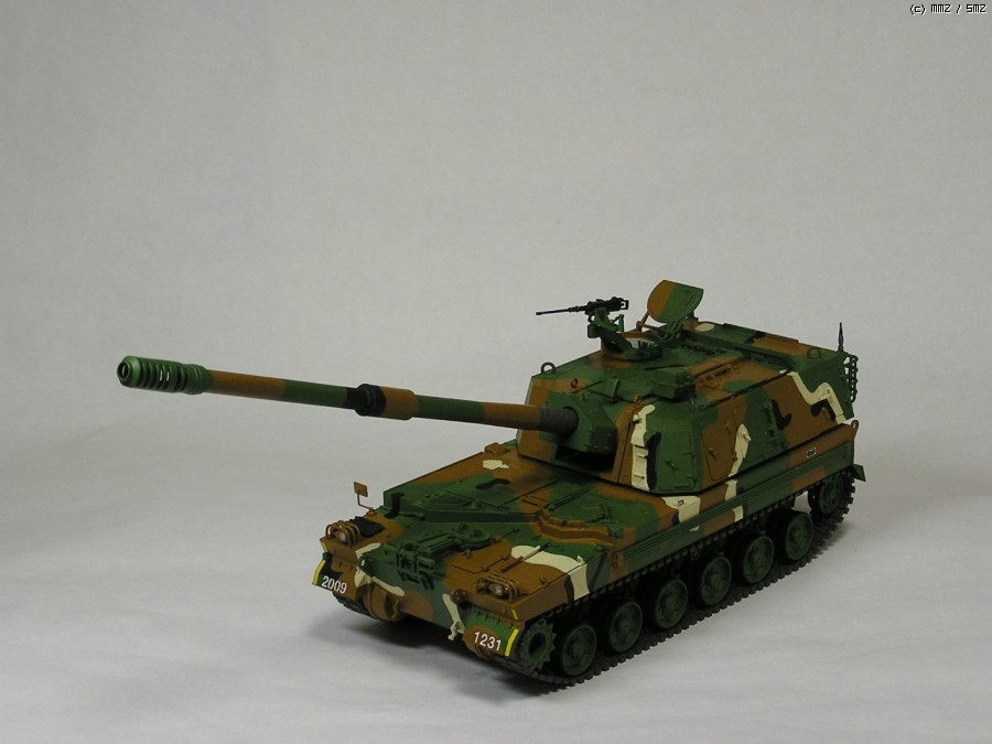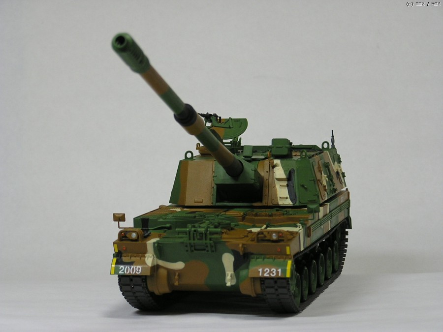올해의 화제작 K-9 자주포입니다. 평소처럼 모델마스터 붓칠이고, 약간 조색해서 사용했습니다. 한정판이지만 에칭 하나도 적용 안하고 기관총만 이지에잇에 들어있던 것으로 교체했습니다. 그 외에는 키트 그대로입니다. 2009년이 가기 전에 일단 여기까지 만드는 것이 목표였습니다. 이른바 깔끔 버전...