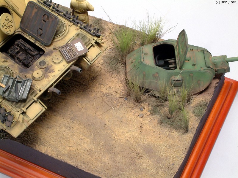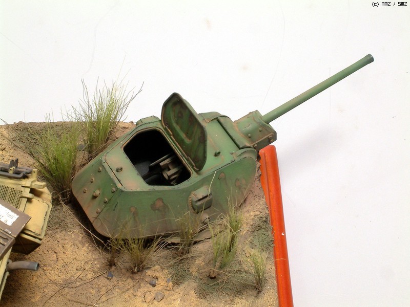 T34/76의 포탑은 아주 오래전에 격파된게 아니고 쿠르스크전투시에 상황이라...적당히 녹슬게만 표현했습니다.