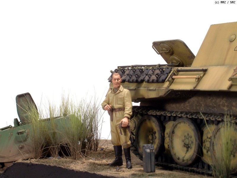 상황설정이 격파된 전차와 고장나서 방치된 전차...그리고 그것을 살펴보는 담배피는 러시아 전차병이라고 설정했습니다.