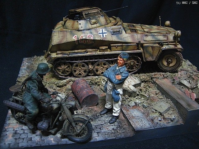 킷은타미야제품이고 도색은 올험브럴입니다, 파츠업은 포신만 아모스케일을 사용햇고 노멀작업입니다,바이크와 인형은 촬영용입니다,,,