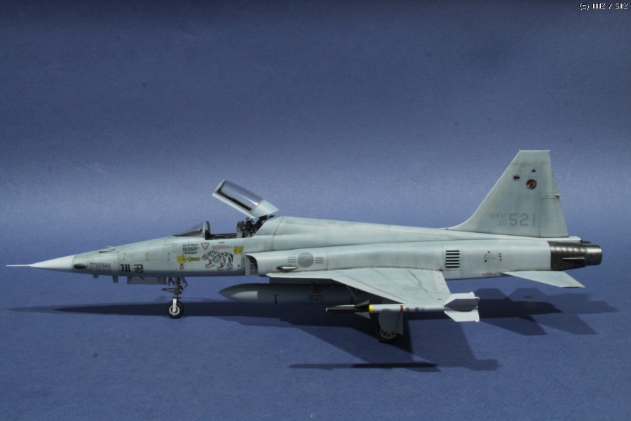 로우비지 도색도 노즈콘의색상,『제공』 글자 유무에 따라 F-5E 및 대한항공에서 라이센스 생산한 KF-5E 로 나뉜다 합니다. 이중 제공 문자가 있는 버전으로 제작하였습니다만, 러더/에일런도 움직이지 않고,,실기와 당연히 다를 수 있습니다.