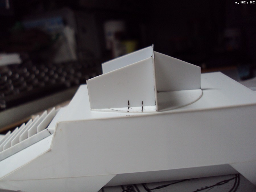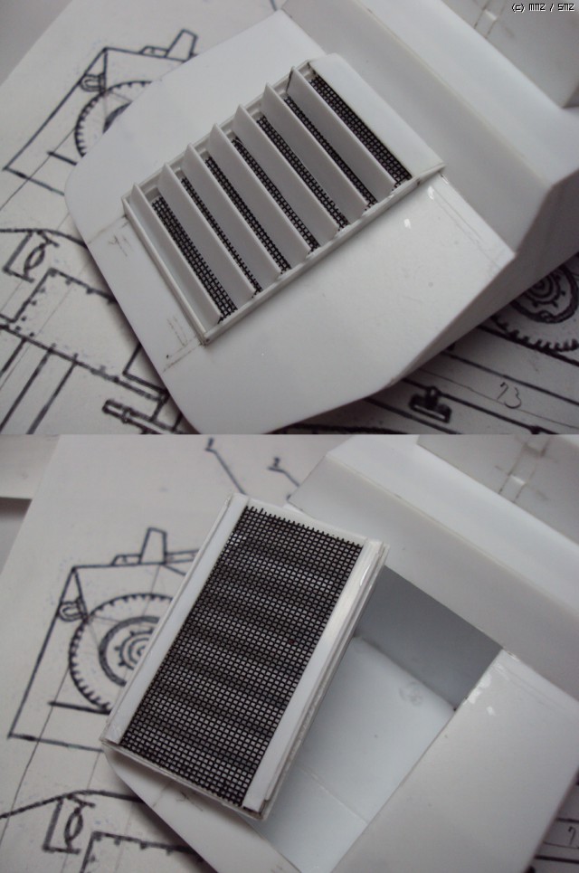 또 지난번에 이어... 문이 있어야 할 V자 모양의 구조물의 뼈대 위에 장갑을 덧씌워서 모양을 만들어 줍니다. 여기서는 작업의 편이를 위해 0.3mm 플라판을 사용했습니다. 안에 뼈대가 있는데 면적도 작아서 0.3mm 플라판도 적당한 내구성을 갖게 됩니다.