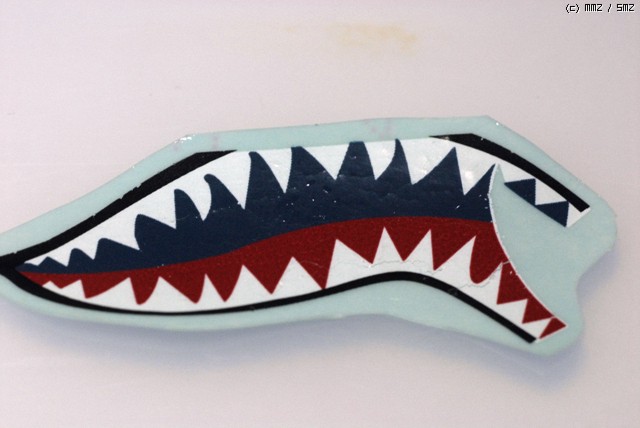 전체 도색을 완료하고 데칼 작업을 하려고 상어입을 물에 담그고 나서 건져 내고 나니