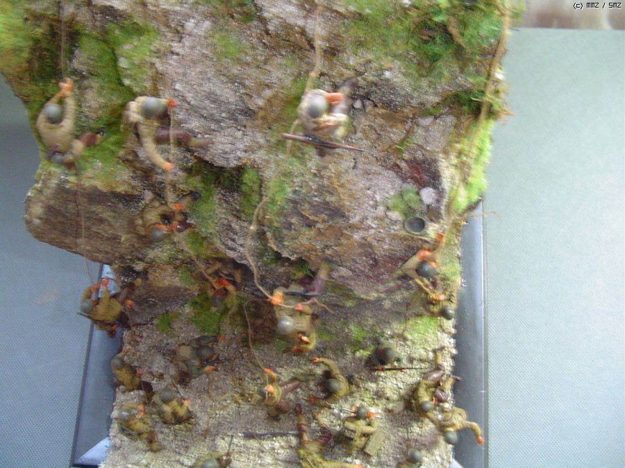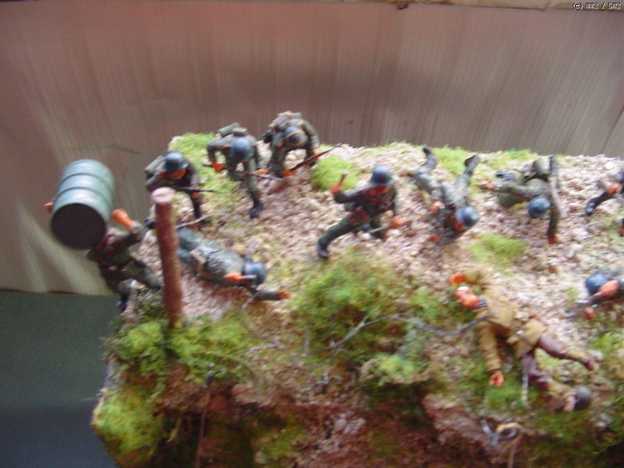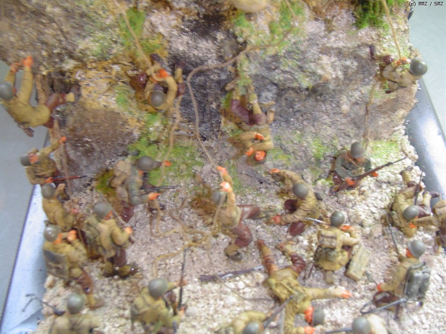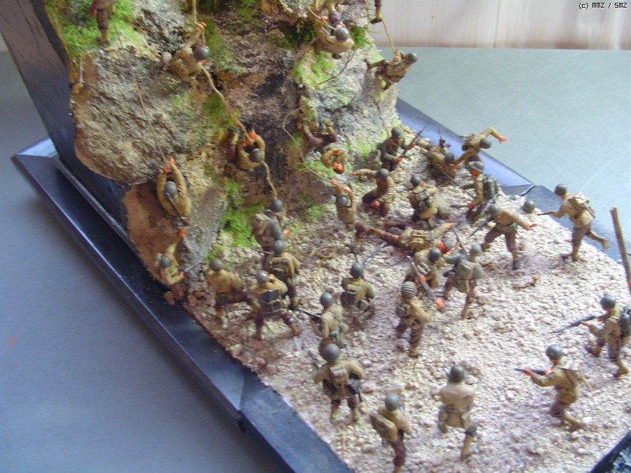 노르망디 상륙전 당시 오마하비치의 절벽에 독일 대포가 있다는 첩보땜시 200여명의 레인져 부대원들이 절벽을 올라서 싸운 것을 디오라마로 삼아봤고 인형들은 죄다 전에 만든 디오 해체한것들을 몇놈 수습해서 재구성해봤습니다