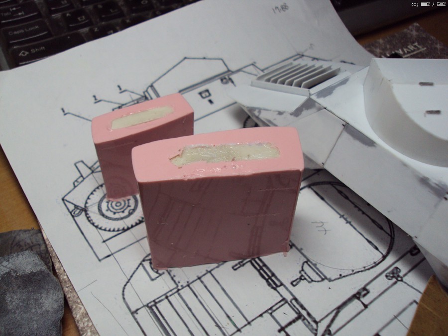 차체의 제작 진행 도중 주문한 실리콘과 우레탄이 도착했습니다. 예전에 쓰던 녀석들이 조금 있긴 하지만 관리를 잘 못해서 완전히 엉망이 되어 버렸습니다. 그래서 결국 새로 주문한 녀석이 도착하고서야 작업에 착수. 우레탄이 들어갈 게이트를 만들고 허브캡은 따로 분리해서 옆에 달아 주었습니다. 바퀴를 이중으로 장착할 경우 이 허브캡을 일일이 잘라내야 하는데 그 역시 만만치 않은 작업이 될듯하여 미리 분할을 했습니다.