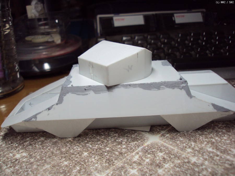 차체 작업도 함께 진행. 전체적인 윤곽이 완성되었으니 디테일 작업에 들어가기 전에 모서리 등의 틈을 메우고 다듬어 줬습니다.
