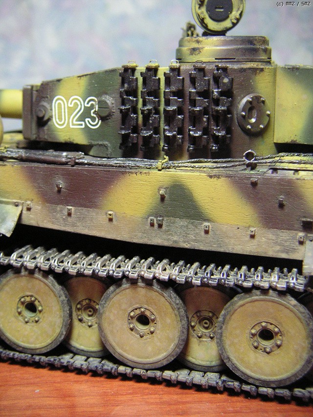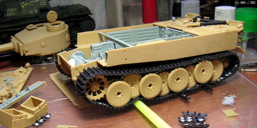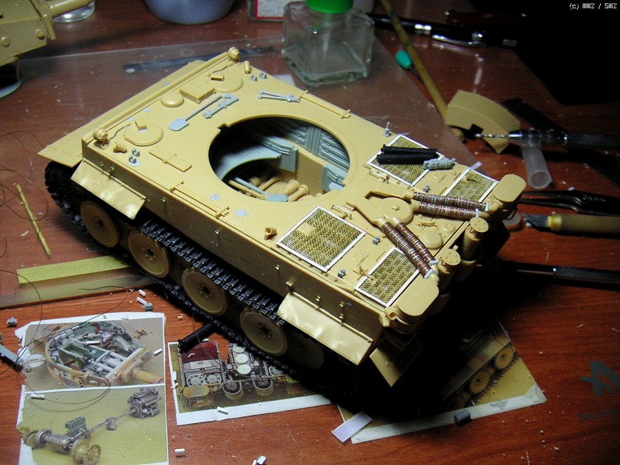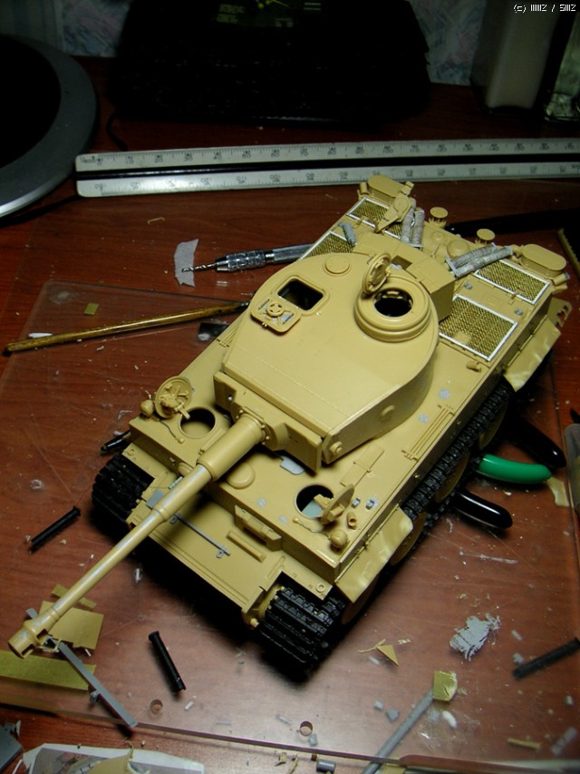 약간의 돈안드는 디테일업,해치,트랙,서스펜션 움직이는건 전부가동식으로 만들고....트랙의 가이드홀 뚫어주고 땜방자국 퍼티로 때우고 ....이짓하다가 짜증이나서 7개월간 모형에 손을 못댔던.....아미 이짓은 두번다시 못할것 같네요..