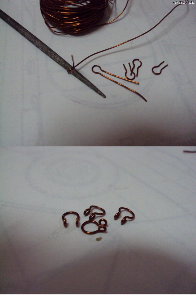 이번엔 차체 측면에 붙는 고리. 아마도 차체 정비 시 차체를 들어 낼 때 사용하는 고리인 듯 한데 구리선으로 모양을 잡아준 뒤 잘라내고 고정부의 고리를 더 만들어 주어 완성합니다.