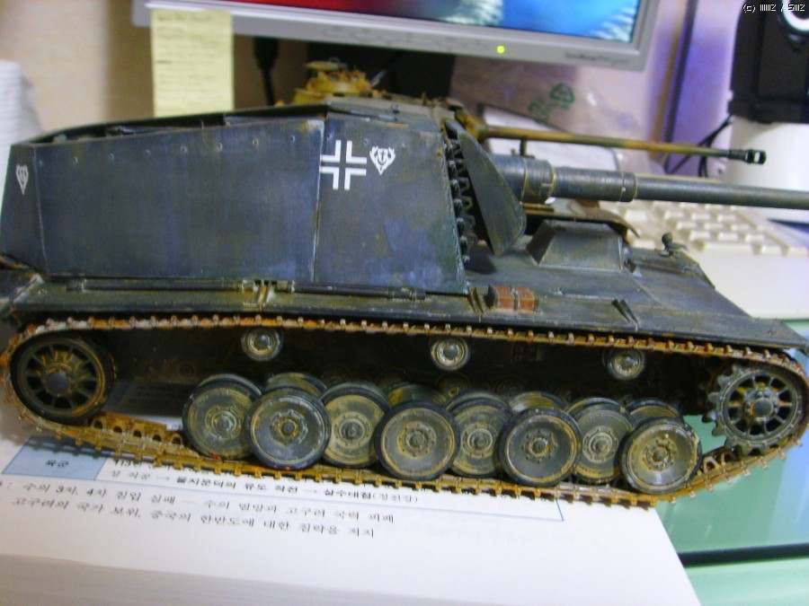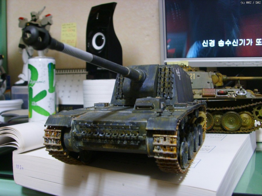 한창 작업하다 중지중인 에밀 자주포입니다. 키트 그대로 만들긴 했습니다만 프라재질이 좀 약한건지 작업하다 문제가 생겼습니다.
