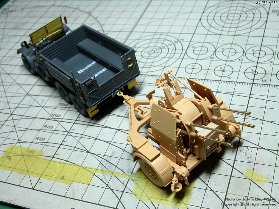 제대로 만들려면 거의 대부분의 부품을 자작에 가깝게 다듬거나 새로 만들어야 하는데 악세사리에 가까운 아이템을 그렇게 만드는 건 의미가 없을 것 같아 20mm Flak을 RB Model제품으로 교체 후 몇몇 간단한 부분을 손보고 키트 그대로 만들었습니다. 부품이 얼마 안되기 때문에 조립은 간단하지만 상대적으로 존재감은 큰 그런 아이템 같습니다. 제법 상하좌우로 가동되는 이른바 '물건'입니다~ ^^