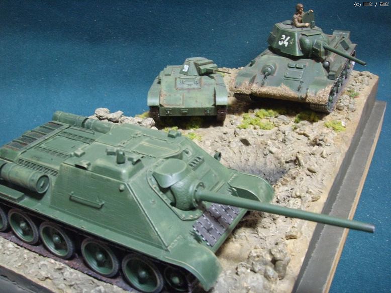 타미야제 러시아의 SU-85 구축전차입니다. 쿠스크전에도 참가했으나, 곧 구경100MM포의 SU-100의 등장으로 생산이 중단됩니다.