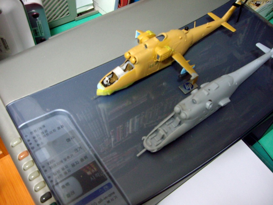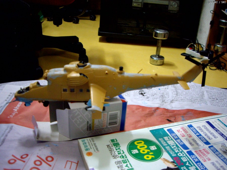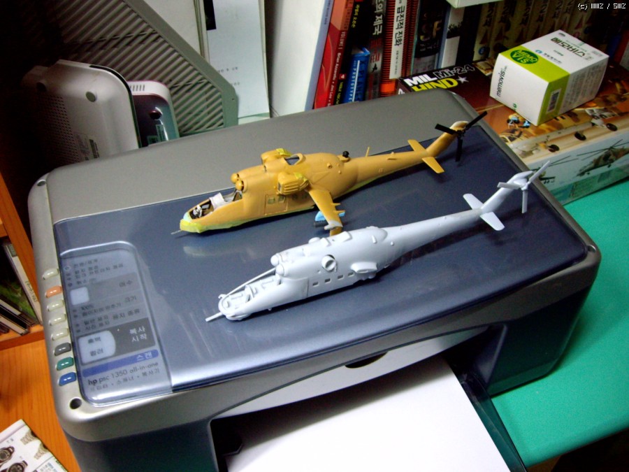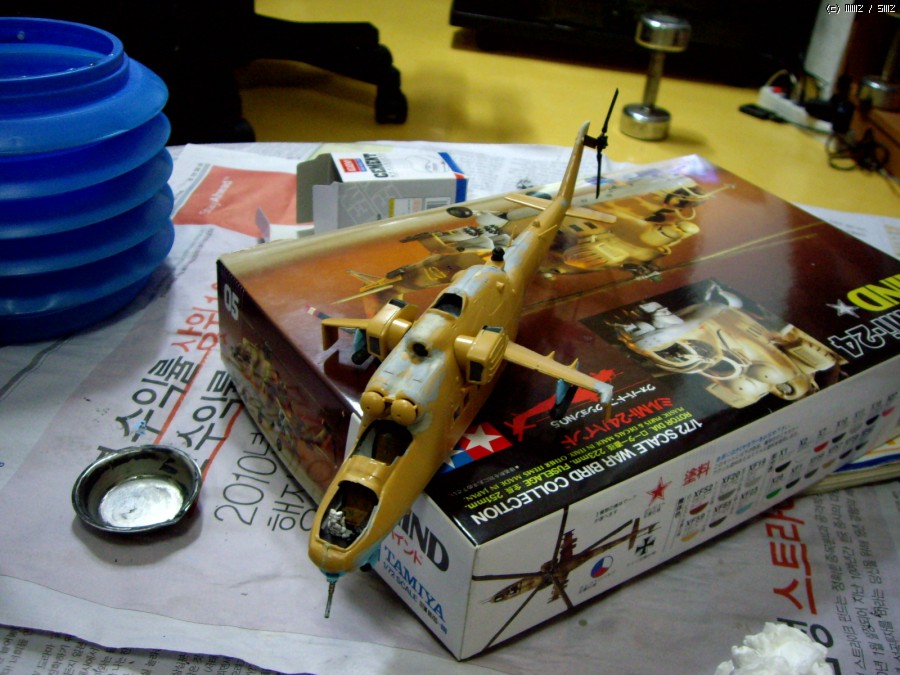 드디어 테일로터와 날개까지 달고 기관총 등지의 색을 칠했습니다. 이제야 공격헬기다워졌군