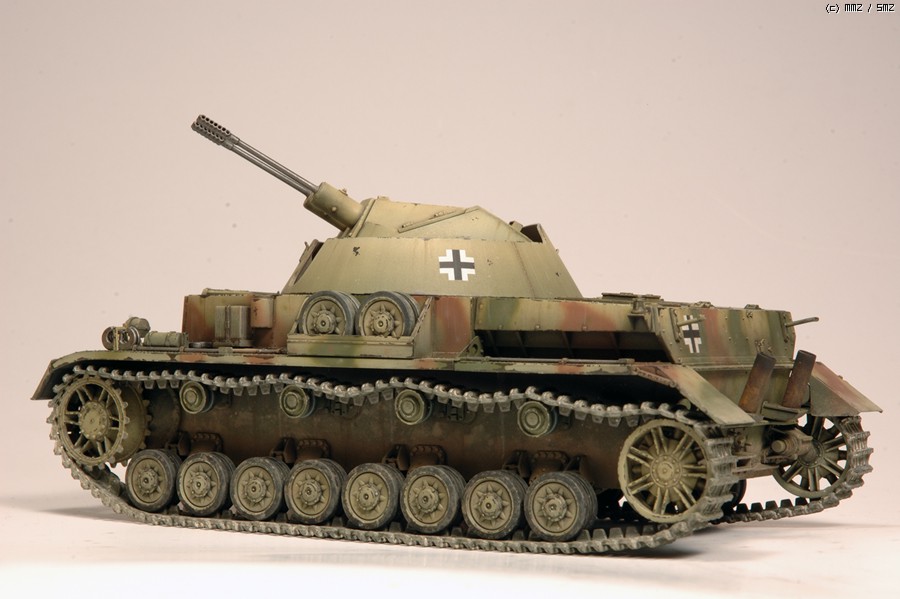 매복위장을 기본으로 해서 대전말기에 등장한 차량(실전배치 되었는지는 잘 모르겠습니다)인 만큼 차체는 기존에 생산되어 일선에서 사용하던 차체에, 위장무늬 없이 기본도색만 된 새로 생산한 대공포탑만 추가한 버젼이라는 설정입니다. 전체가 매복위장인 것보다는 변화가 있어 단조롭지않은 것 같습니다.