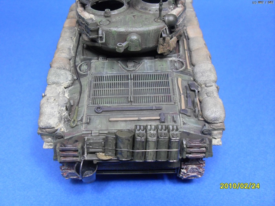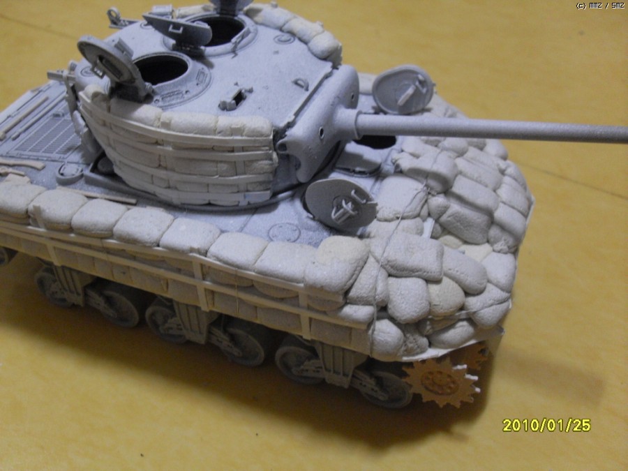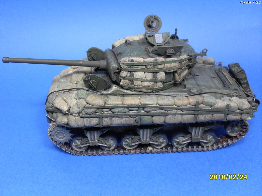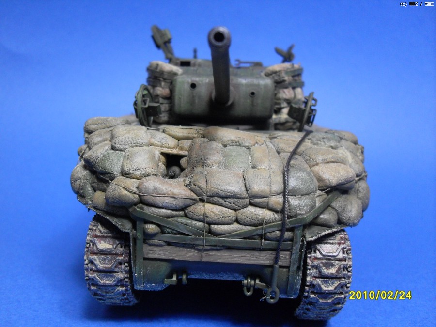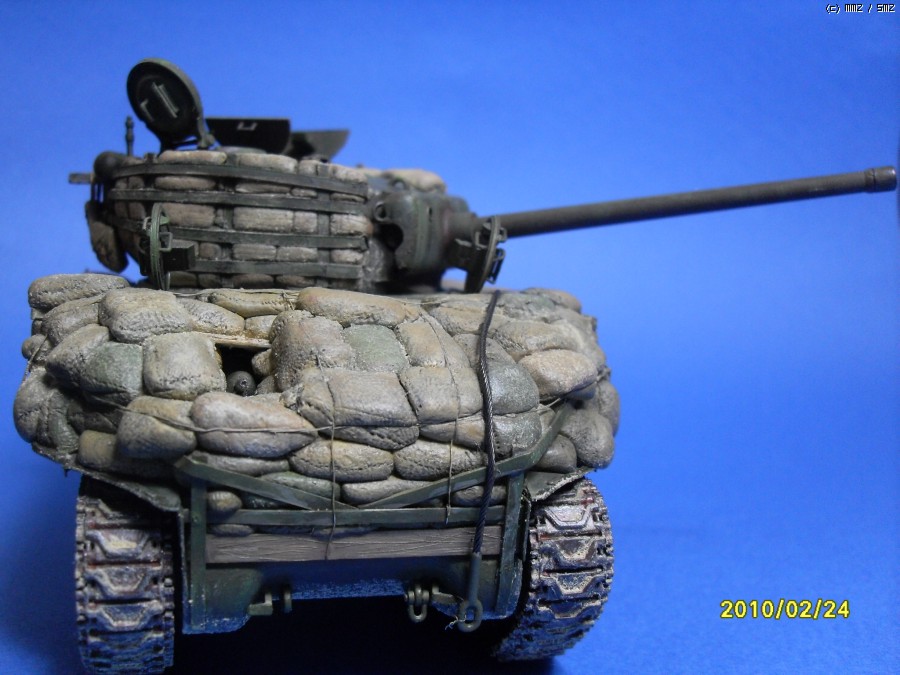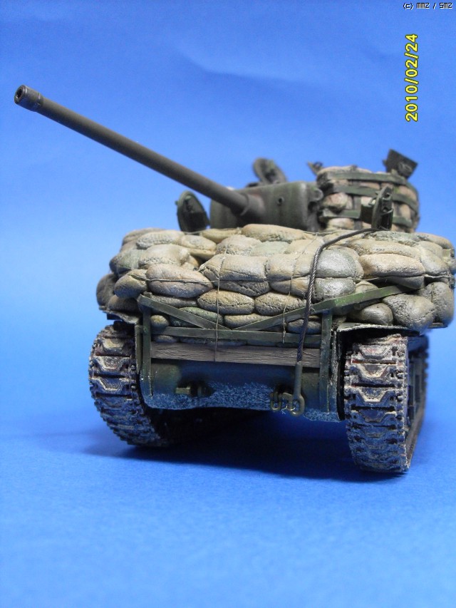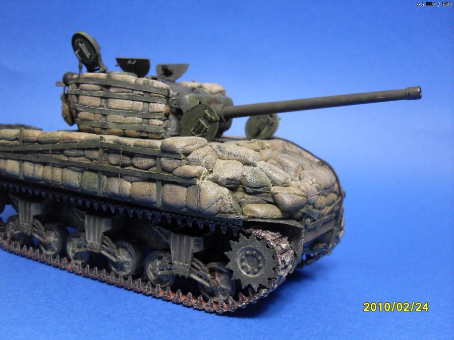 안녕하세요 셔먼의 빈약한 방어력을 샌드백으로 보강한 버젼입니다. 사낭은 모두 에폭시로 빚어서 만들어 주었습니다. 베이스 키트는 이탈레리 M4A3 76(w)입니다. 지하실에서 수년간 폐차상태로방치되던 부품중에 포탑과 상부헐빼고 나머지는 간단한 자자작과 드래곤 유휴부품조합으로 완성하였습니다. 부족한 실력이지만 편안하게 봐주시면 감사하겠습니다.