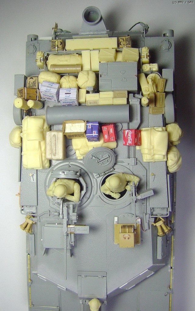 장비품은 레전드,D Toys,벨린덴,네오그레이드 제품이며,코카콜라와 펩시콜라 박스는 트럼페터 M1127의 것을 차용했고,레진 장비품은 도색의 편의를 위해 각 구획(?)별로 탈착이 가능하도록 했습니다. 또한 사이드 스커트도 탈착이 됩니다.