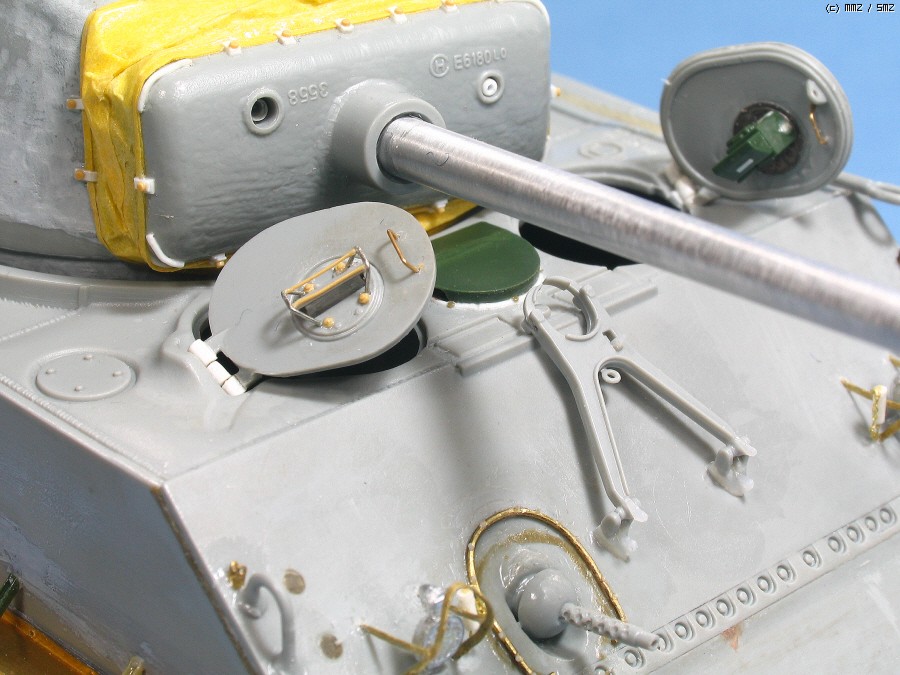 전차장 해치 부품은 역시 AFVCLUB M40자주포에 있던 것으로 투명부품인 것과 해치가 분리되어 잠망경 위치를 자유로이 선택할 수 있어 사용, 단점은 드래곤 포탑에 장착부가 여유가 없어 둘레를 좀 다듬어야 했습니다.