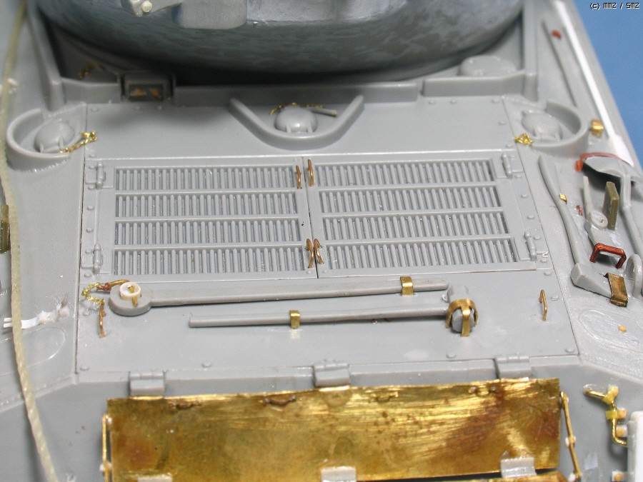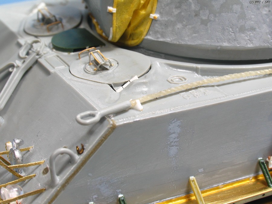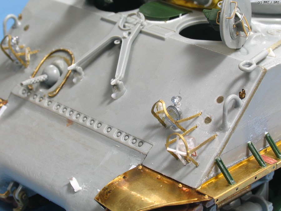 고리 뒤의 작은 에칭은 백 미러 고정부이고, 6.25때 사용한 후기형은 고리의위치가 맨 가장자리이므로 옮겼습니다.