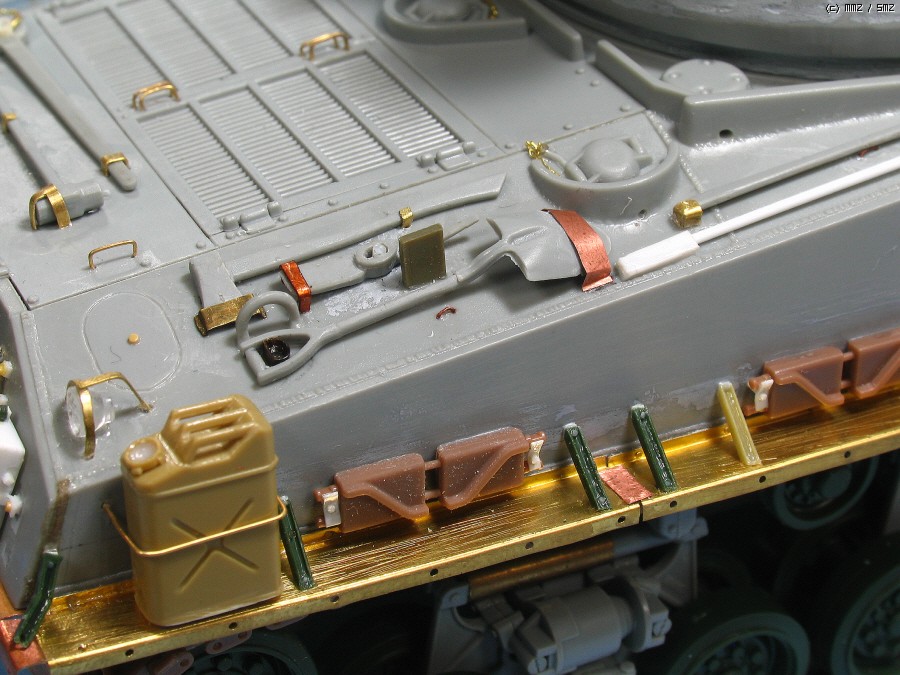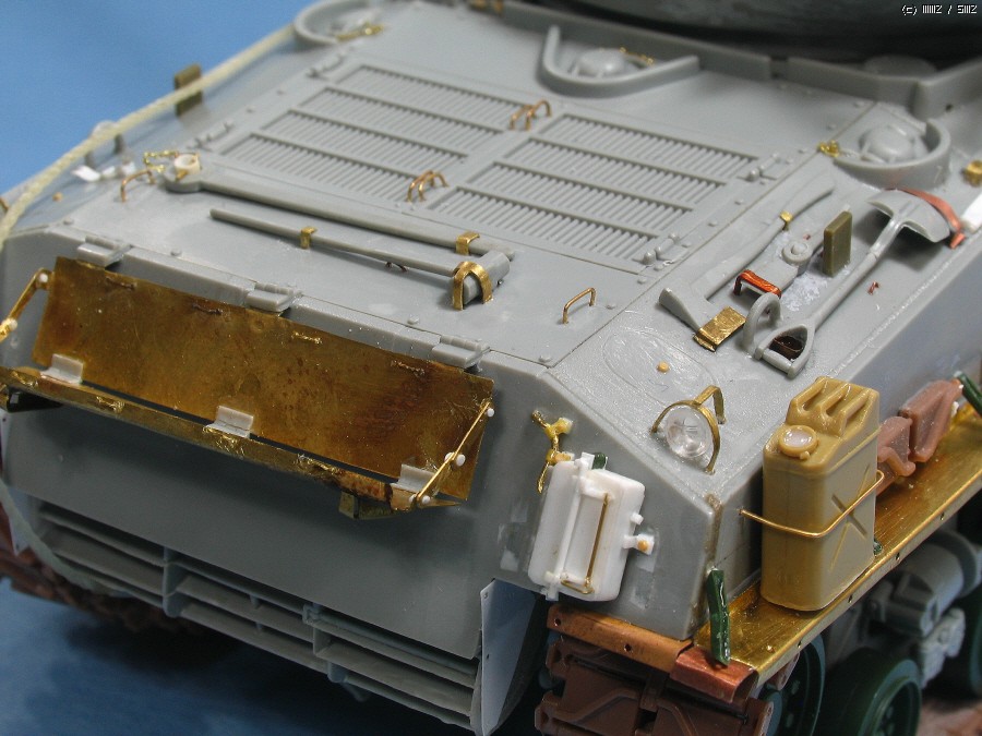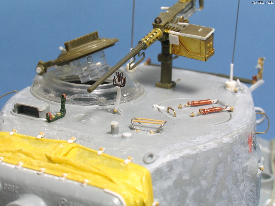 cal.50 기관총은 ABER 에칭과,AFVCLUB 본체,타스카 의 여유 총신의 결합으로, 타스카 키트를 참조해서 조금 손 보았습니다. 포탑뒤의 기관총 걸이에 꽃은 50 예비총신도 타스카 부품...