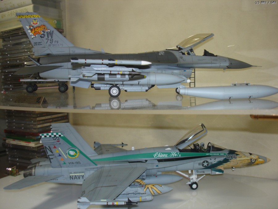 흔하디 흔한 타미야 F-16입니다. 그냥 스트레이트로 만들고 FIGER MEET 참가 기체인것을 감안해서 깔끔하게 도색 했습니다. 또한 제가 개인적으로 하이웨더링을 별로 좋아하지 않습니다. 사진은 저희집에 장식장에 있는 호넷과 같이 찍었습니다.