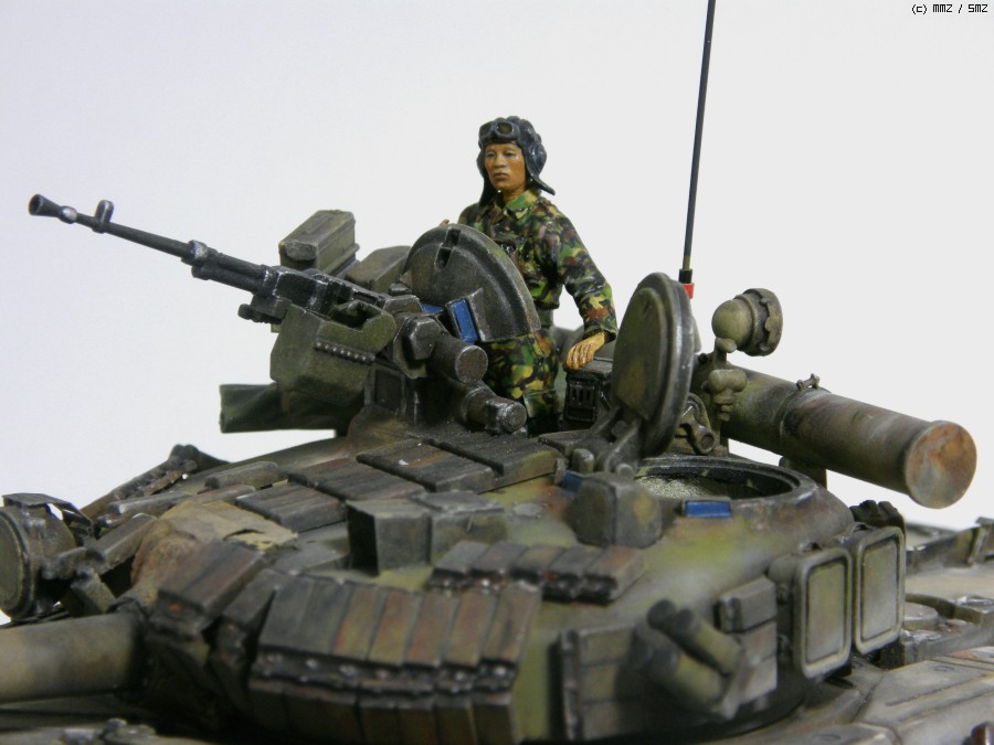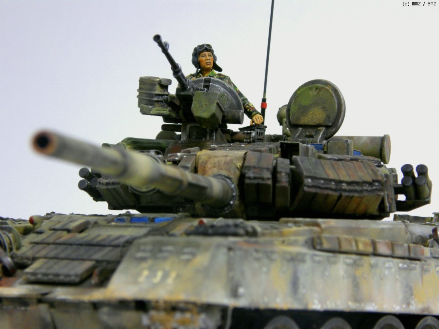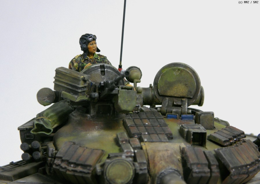 러시아 전차를 한국군 version 으로 작업 했는데요 위장무늬는 러시아전차 그대로구요 전차병만 한국군으로 했습니다. 실제감을 표현 하려고 기본 색칠위에 유화와 파스탤로 색칠 하였습니다.그러다보니 위장무늬가 잘 보이지 않습니다.