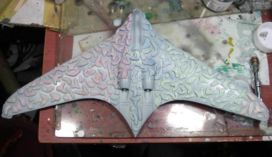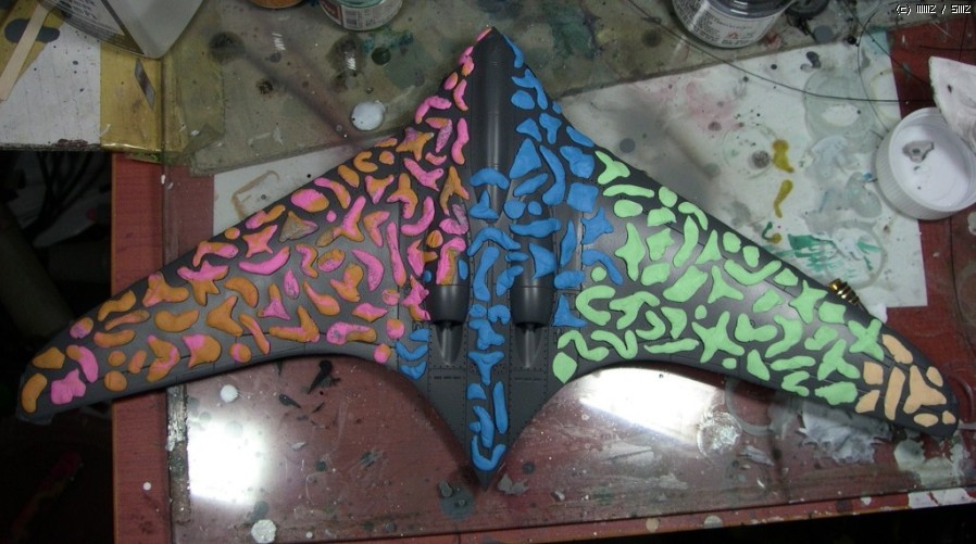 위장무늬색을 먼저 올리고 고무찰흙으로 마스킹